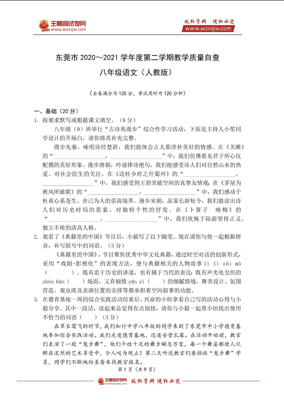 东莞市2020~2021学年度第二学期教学质量自查八年级语文(人教版) _R220530172716287