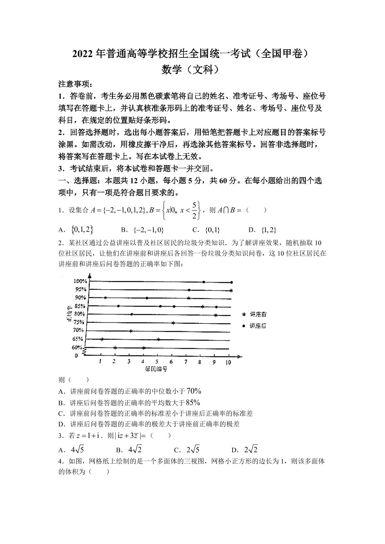 2022年高考全国甲卷-文科数学