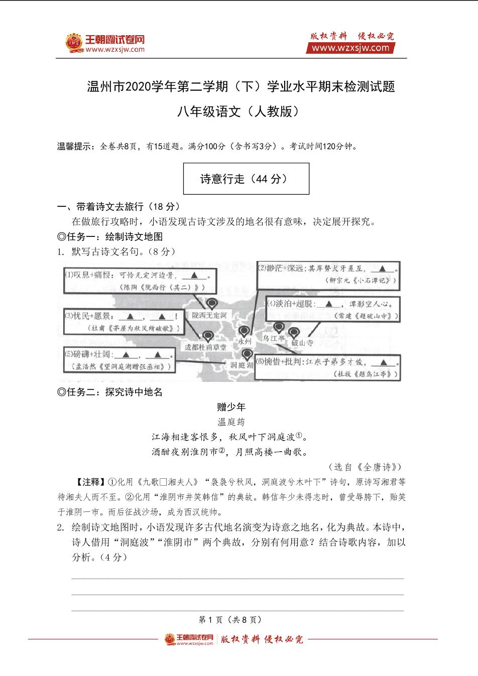 温州市2020学年第二学期(下)学业水平期末检测试题八年级语文(人教版)