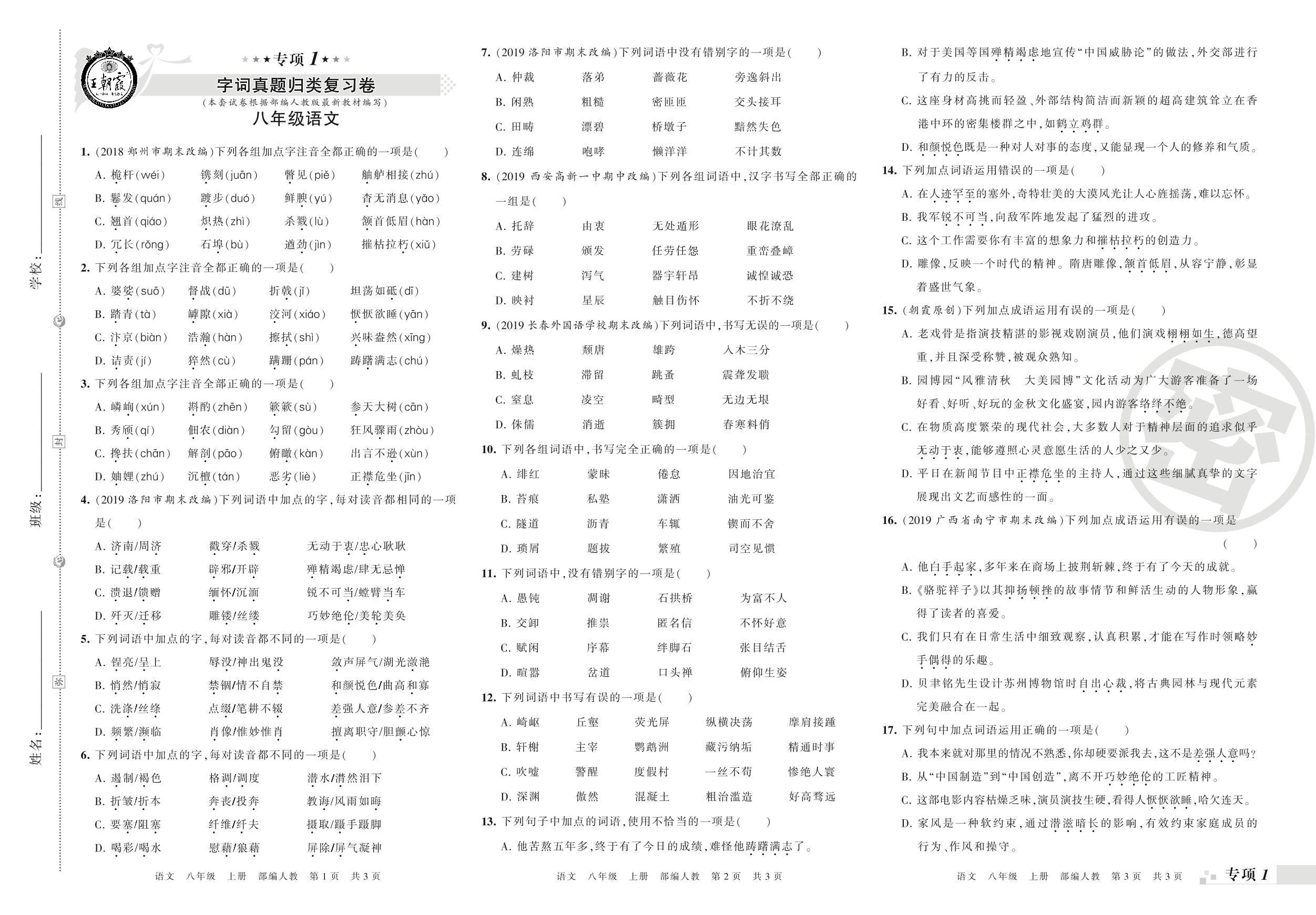 王朝霞期末专项卷——字词、句子真题归类复习八年级上册语文(人教版)_R21080231046【0】