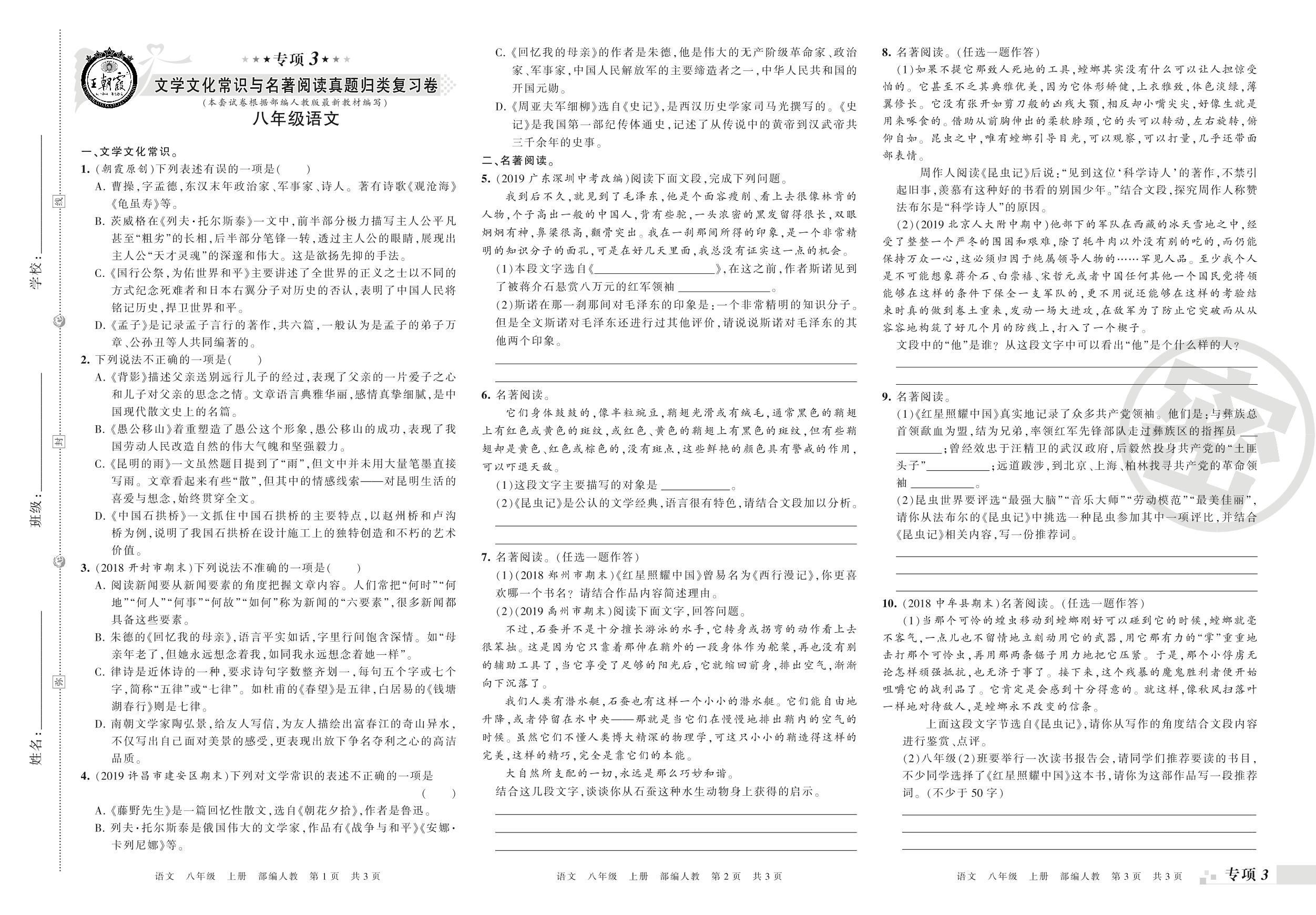 王朝霞期末专项卷——文学文化常识与名著阅读、综合性学习真题归类复习八年级上册语文(人教版)_R21080231051【0】