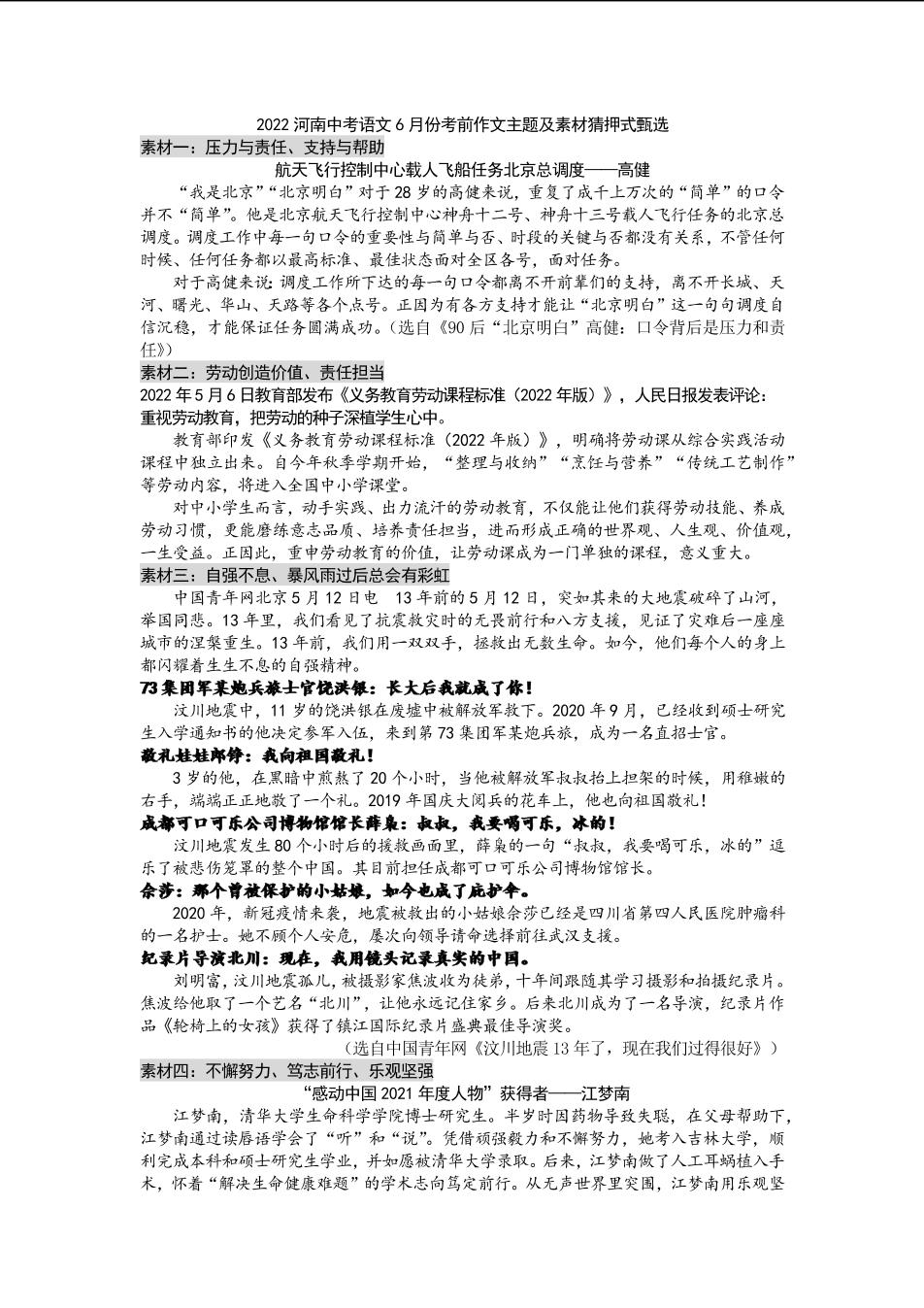 【语文】2022年王朝霞中考猜押系列——6月份考前作文主题及素材猜押式甄选推送