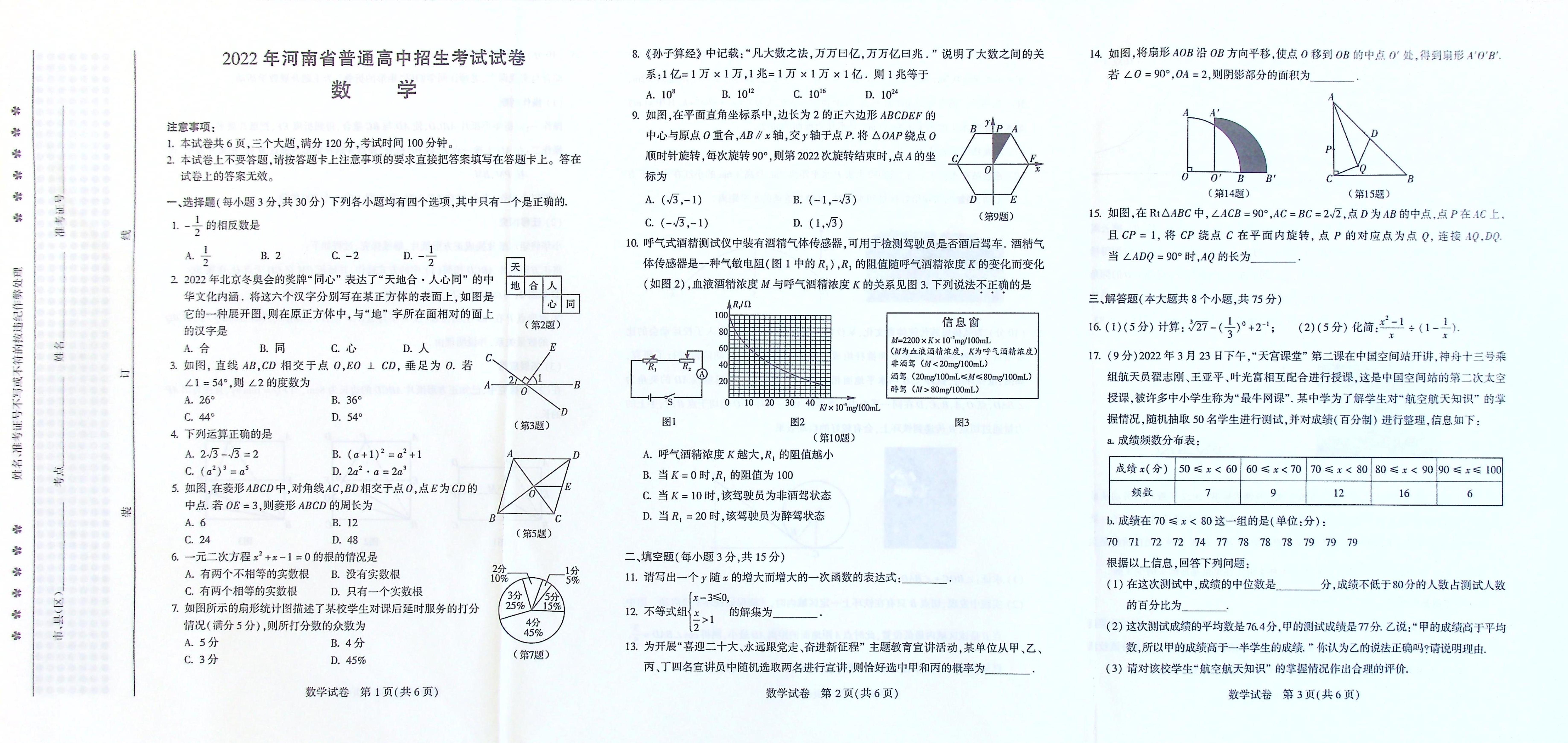 2022年河南省中考数学真题