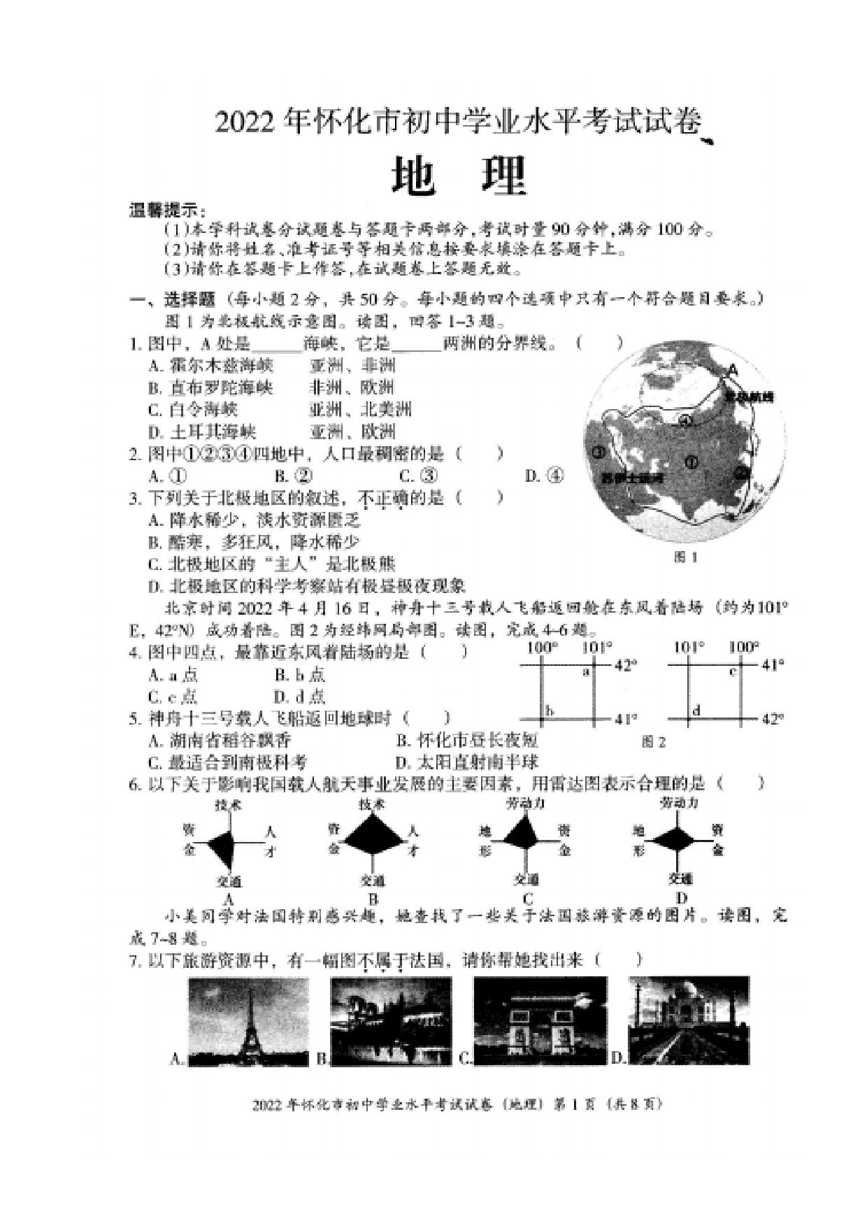 2022年湖南省怀化市中考地理真题