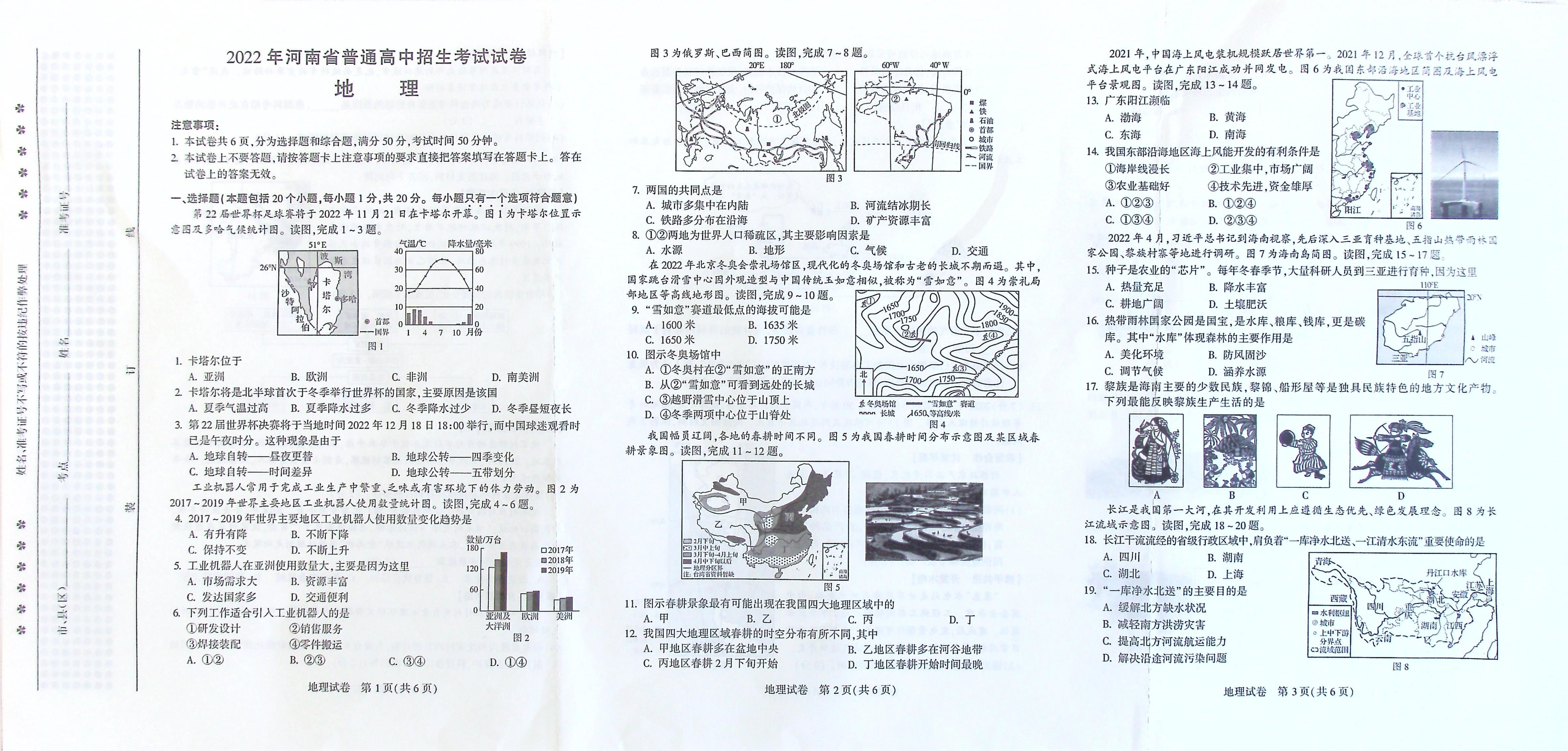 2022年河南省中考地理真题
