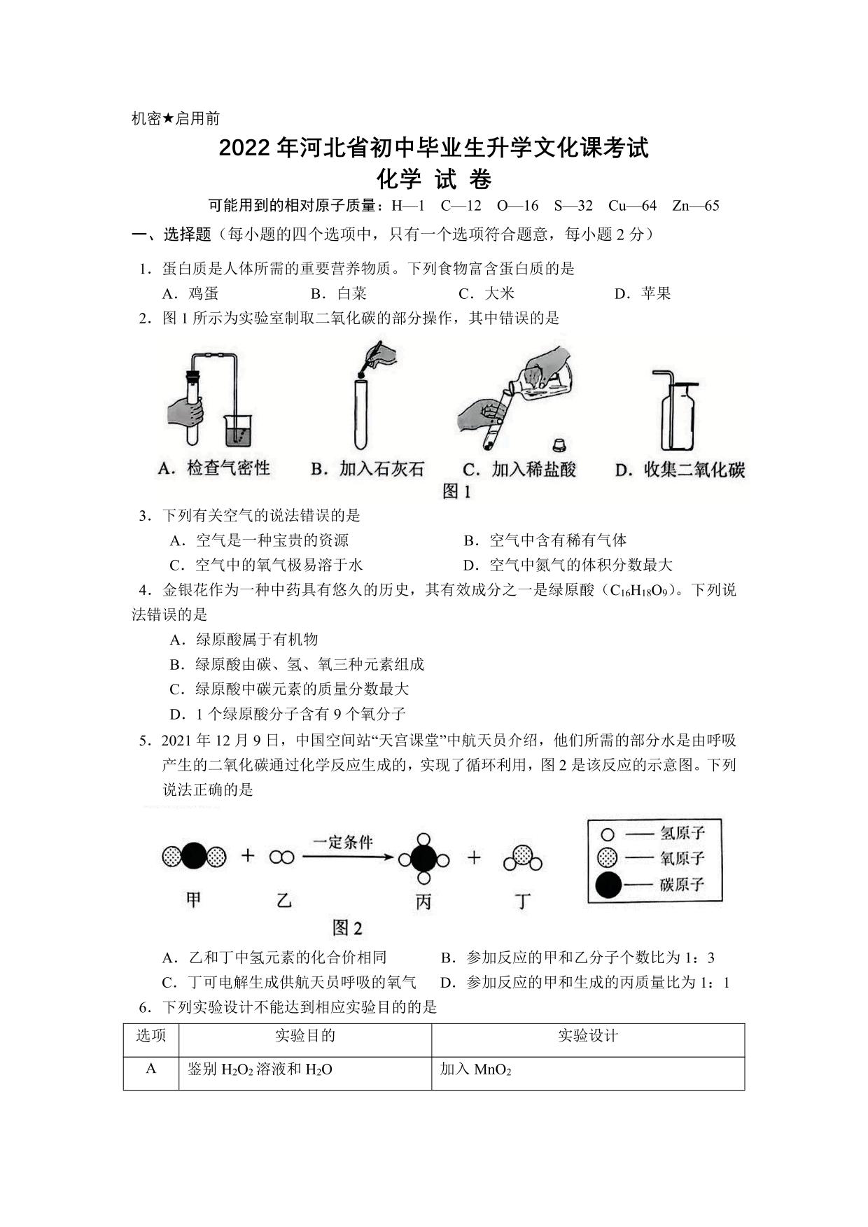 2022年河北省中考化学真题