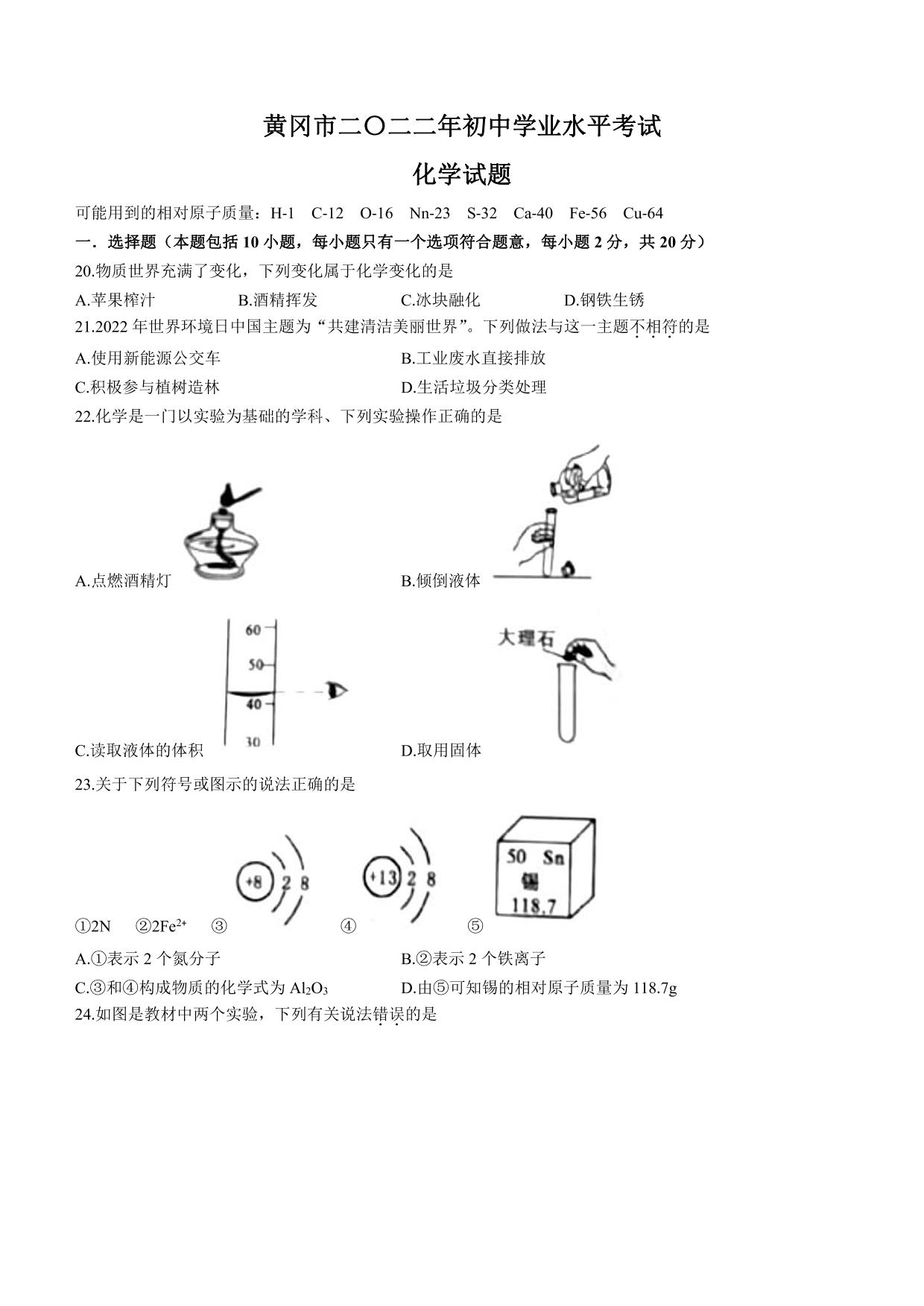2022年湖北省黄冈市、孝感市、咸宁市三市中考化学真题