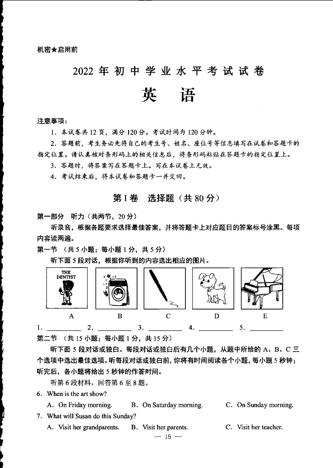 2022年内蒙古包头市中考英语真题