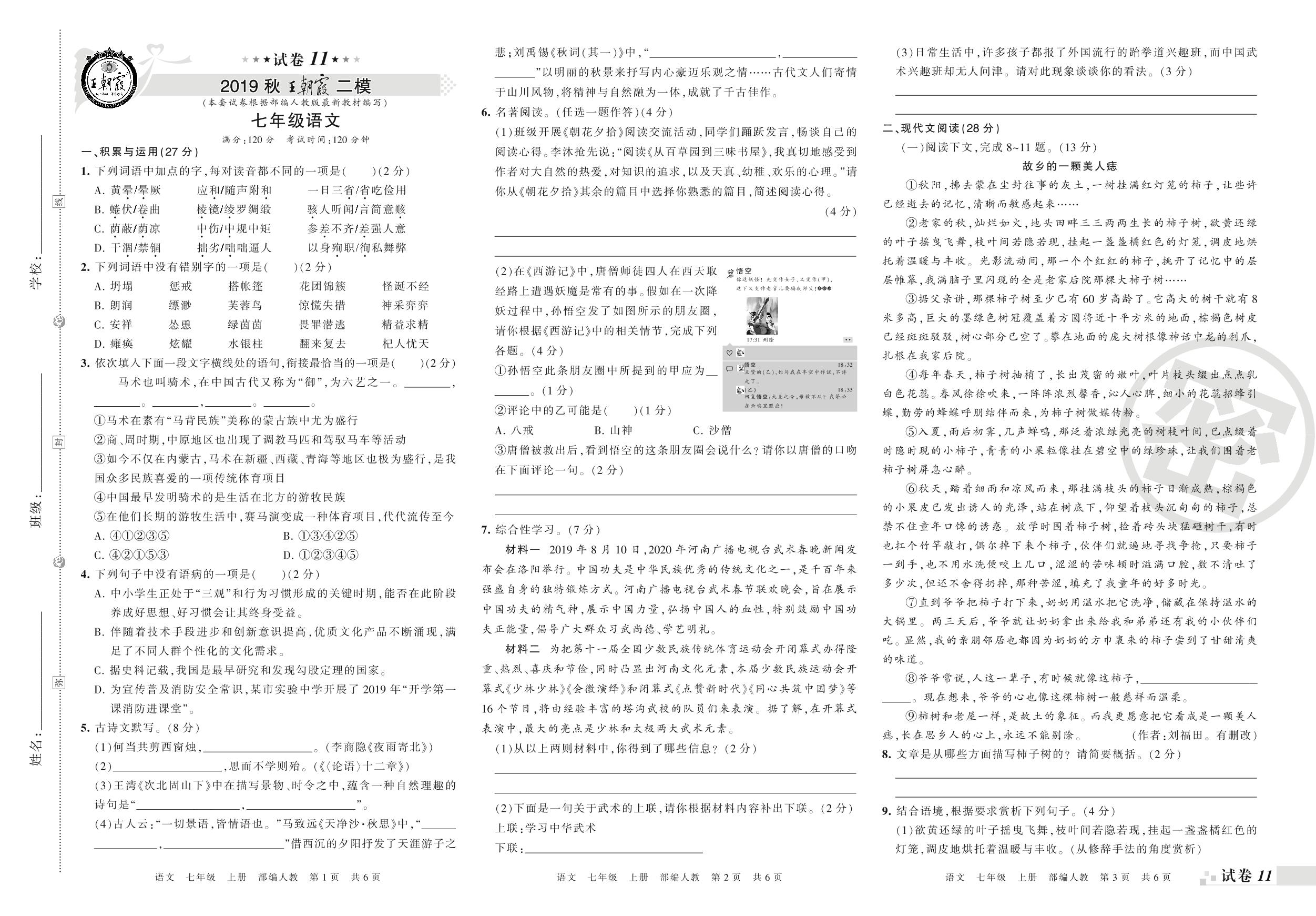 王朝霞期末模拟卷七年级上册语文(人教版)_R21080231556【11】