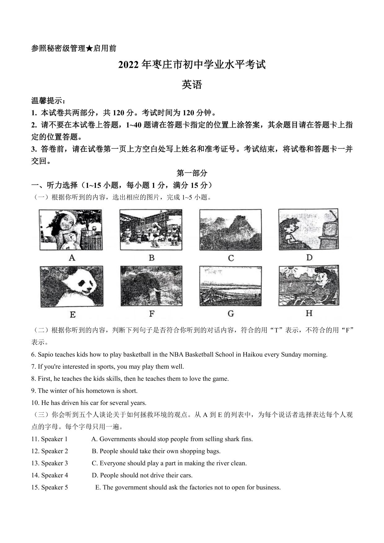 2022年山东省枣庄市中考英语真题【无听力音频】