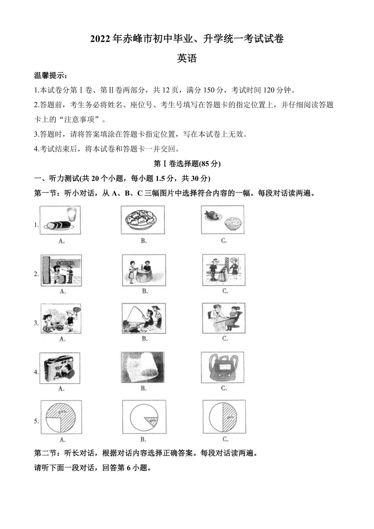 2022年内蒙古赤峰市中考英语真题【无听力音频】