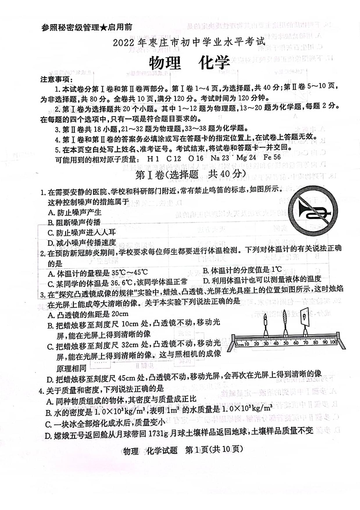 2022年山东省枣庄市中考物理、化学真题