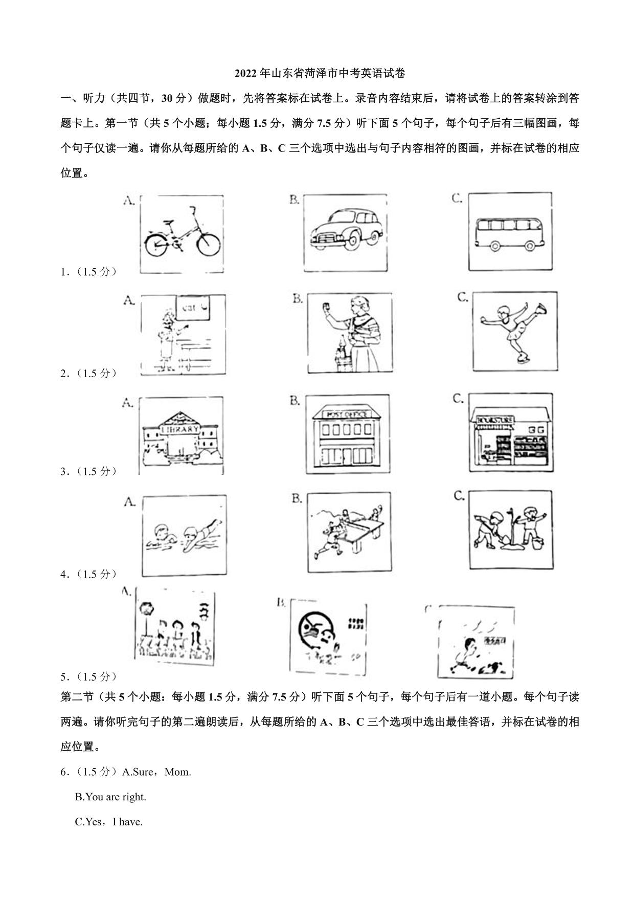 2022年山东省菏泽市中考英语真题【无听力音频】