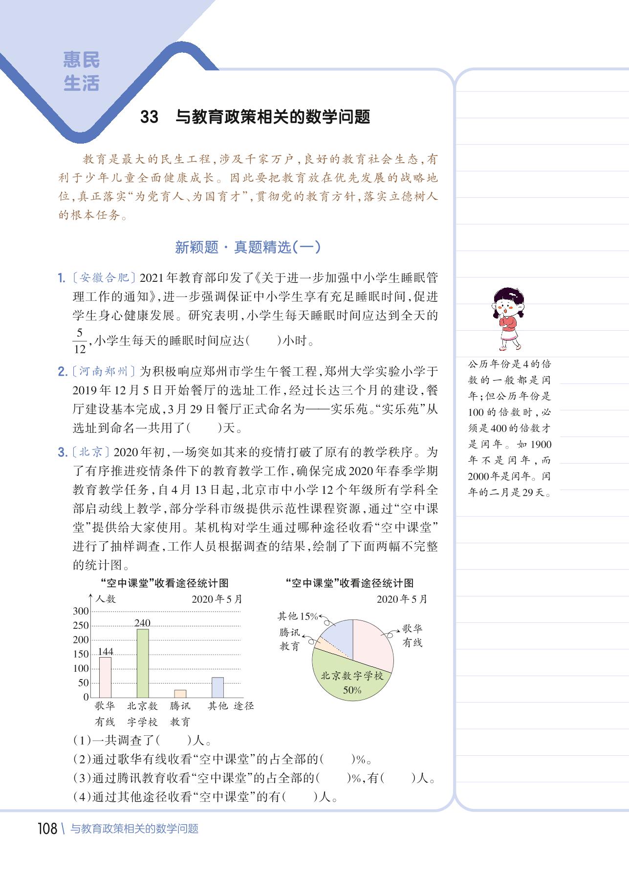 【2022版小学数学新颖题专练】热点话题九 惠民生活 33 与教育政策相关的数学问题