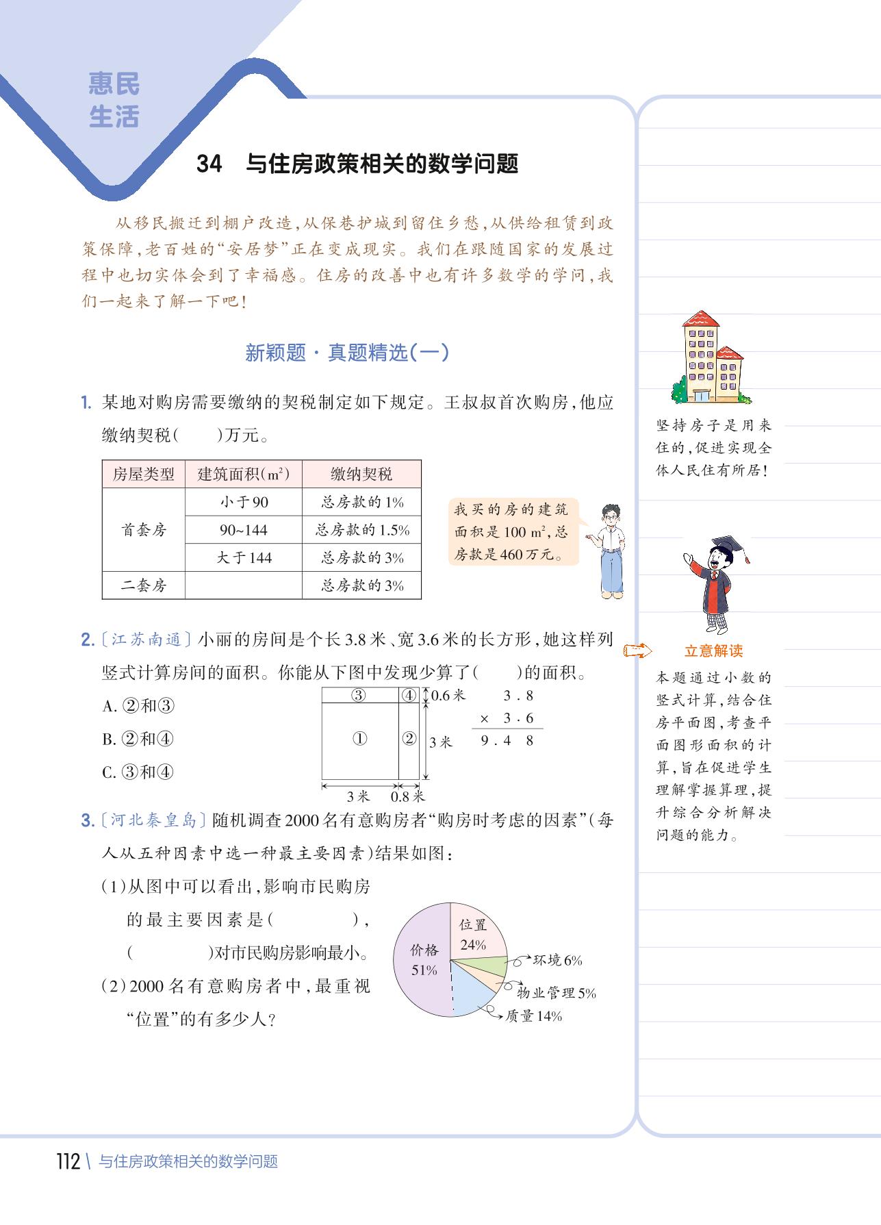 【2022版小学数学新颖题专练】热点话题九 惠民生活 34 与住房政策相关的数学问题