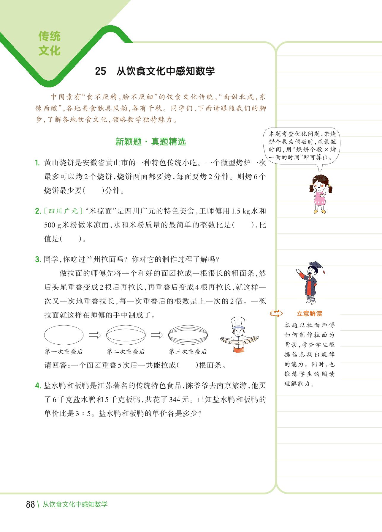 【2022版小学数学新颖题专练】热点话题八 传统文化 25 从饮食文化中感知数学