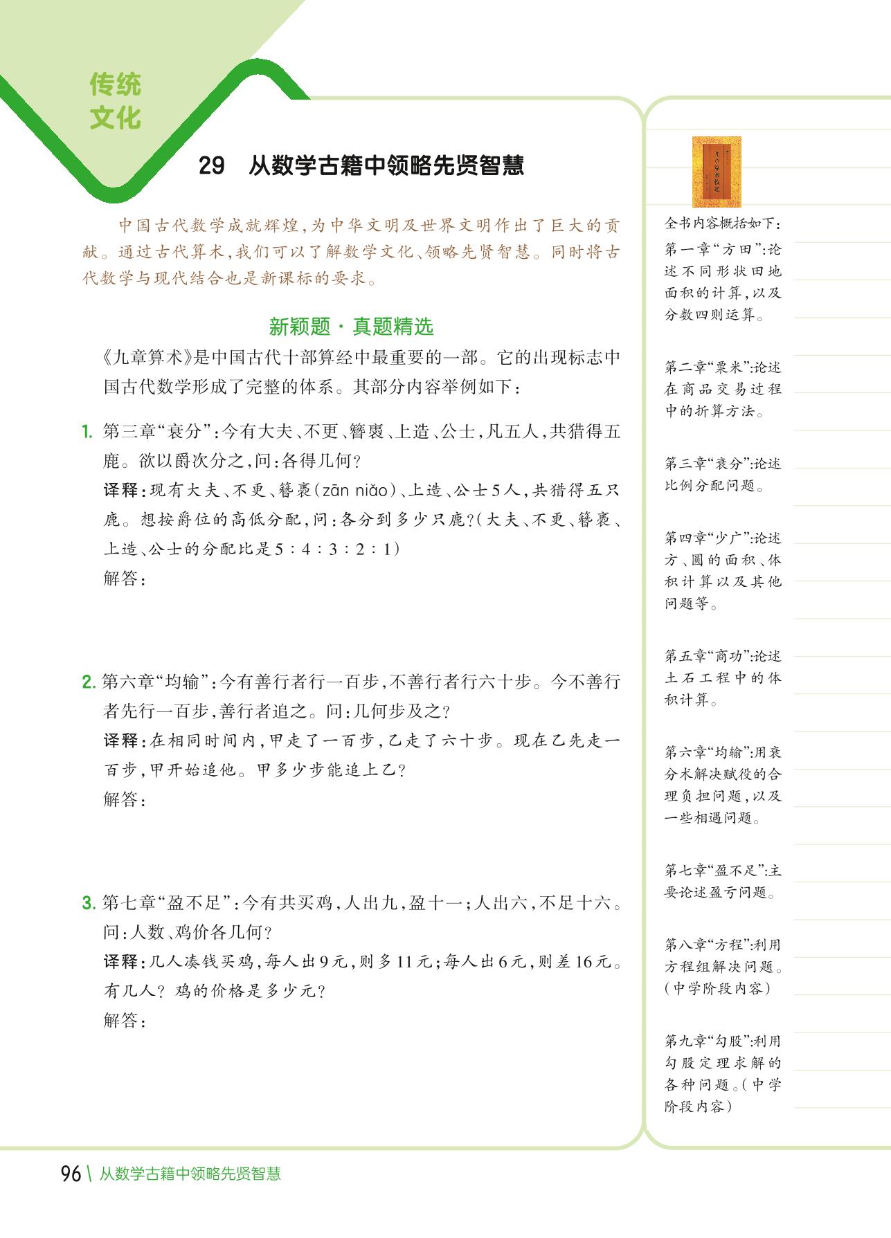 【2022版小学数学新颖题专练】热点话题八 传统文化 29 从数学古籍中领略先贤智慧