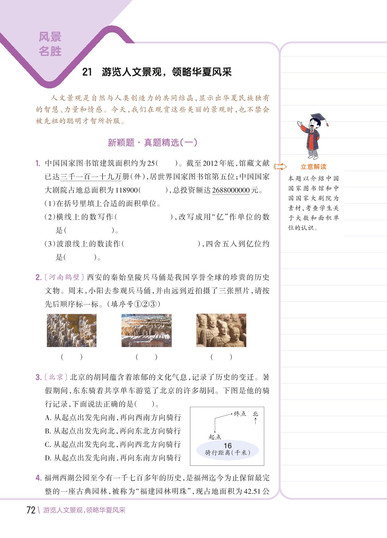 【2022版小学数学新颖题专练】热点话题七 风景名胜 21 游览人文景观,领略华夏风采