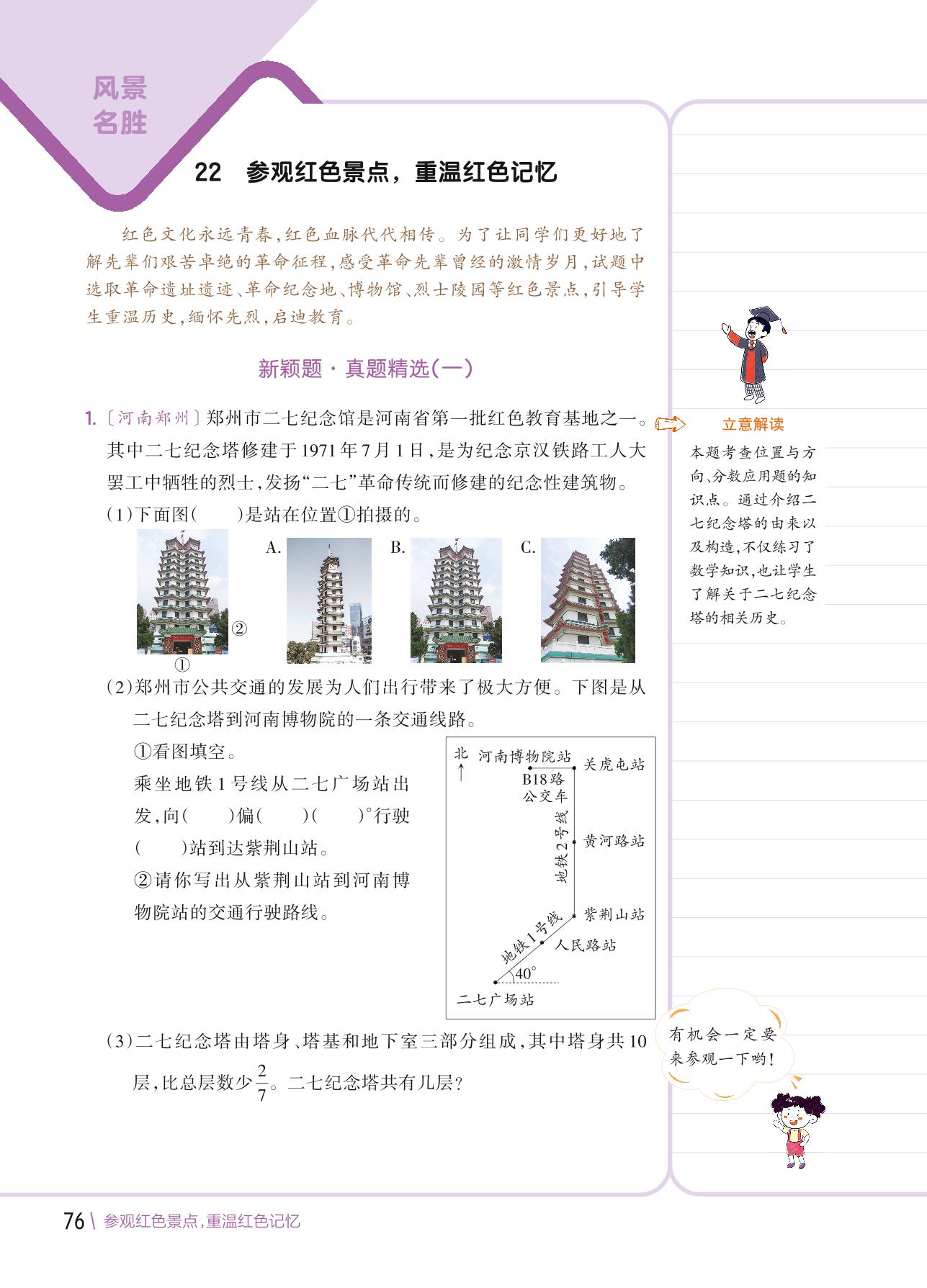 【2022版小学数学新颖题专练】热点话题七 风景名胜 22 参观红色景点,重温红色记忆