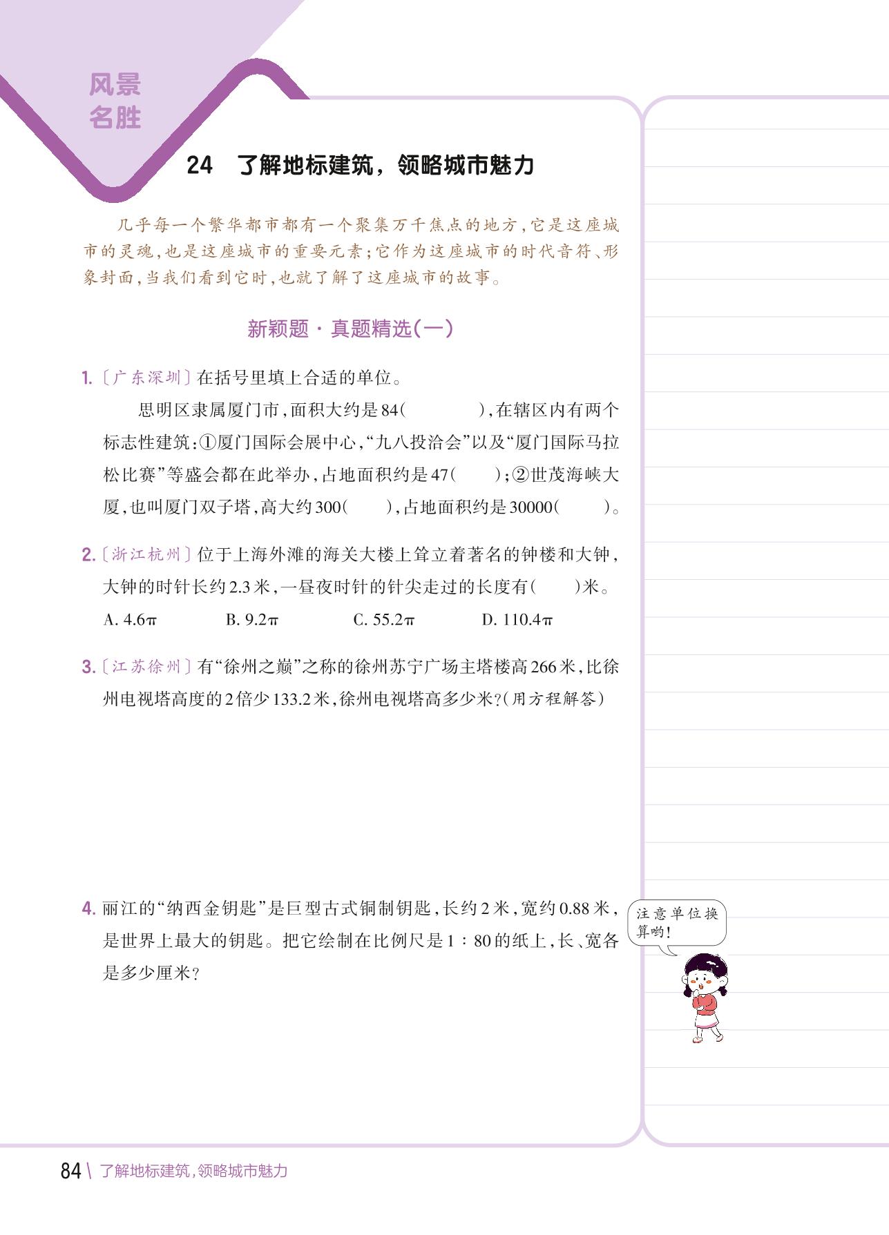 【2022版小学数学新颖题专练】热点话题七 风景名胜 24 了解地标建筑,领略城市魅力