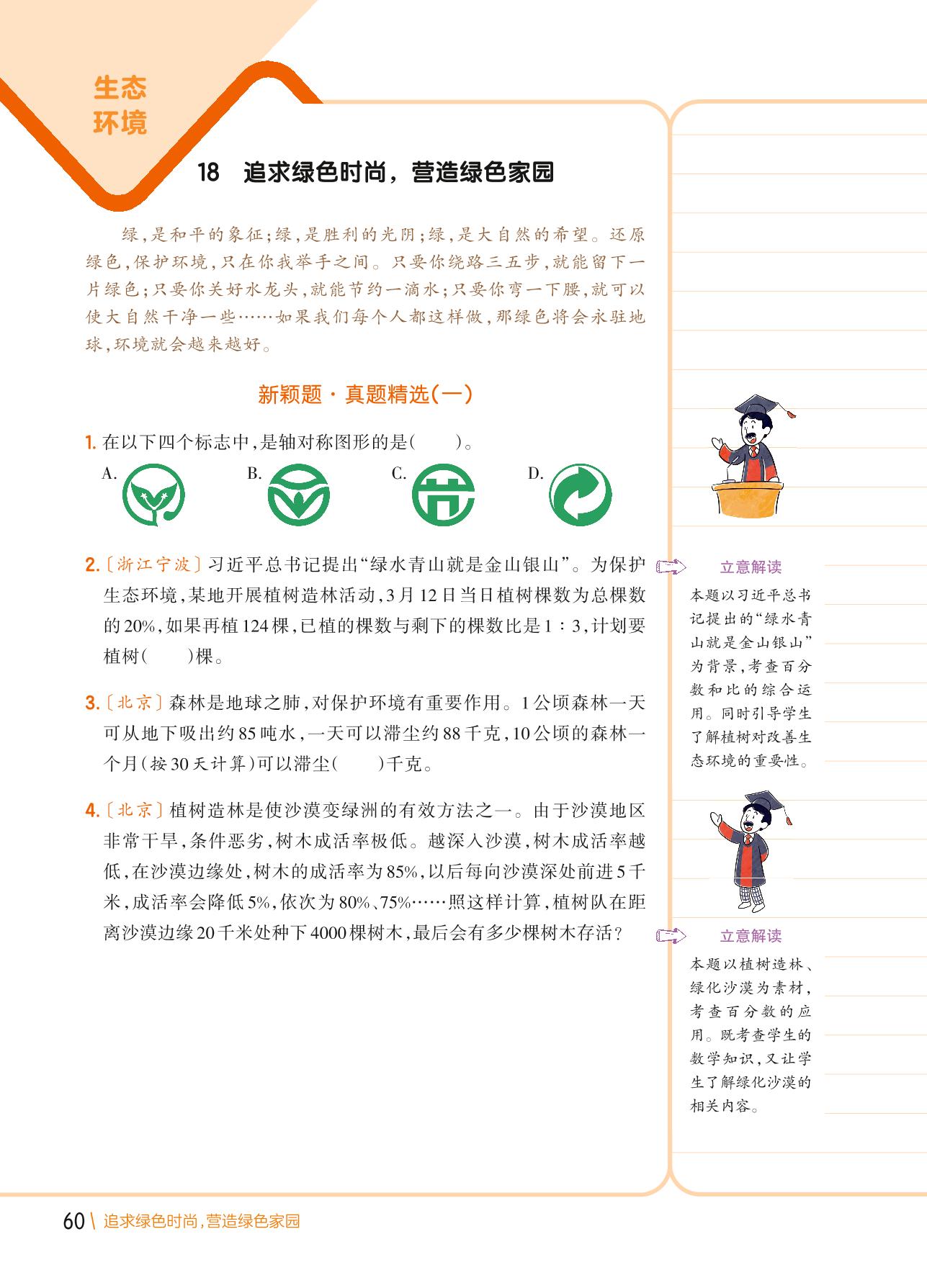 【2022版小学数学新颖题专练】热点话题六 生态环境 18 追求绿色时尚,营造绿色家园