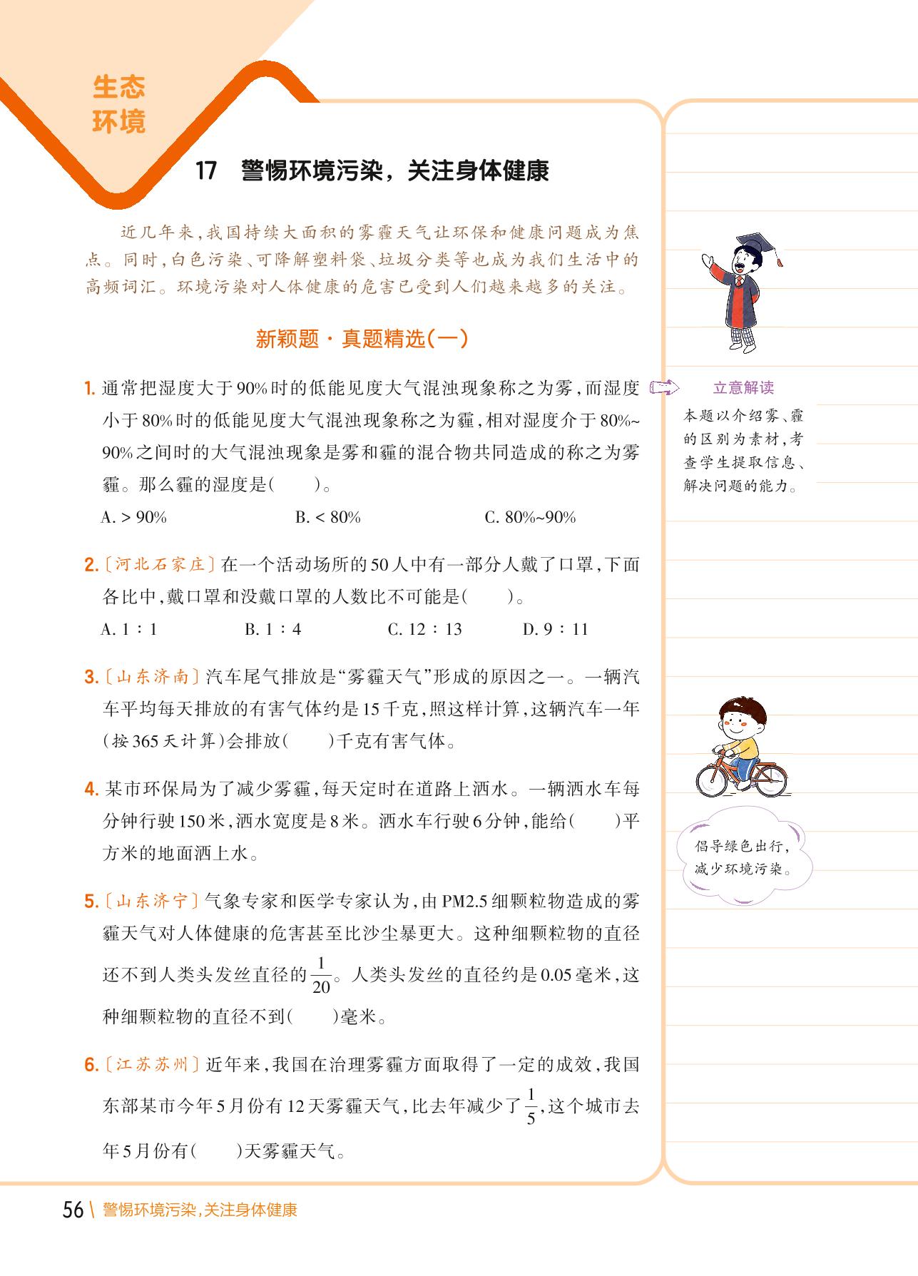 【2022版小学数学新颖题专练】热点话题六 生态环境 17 警惕环境污染,关注身体健康