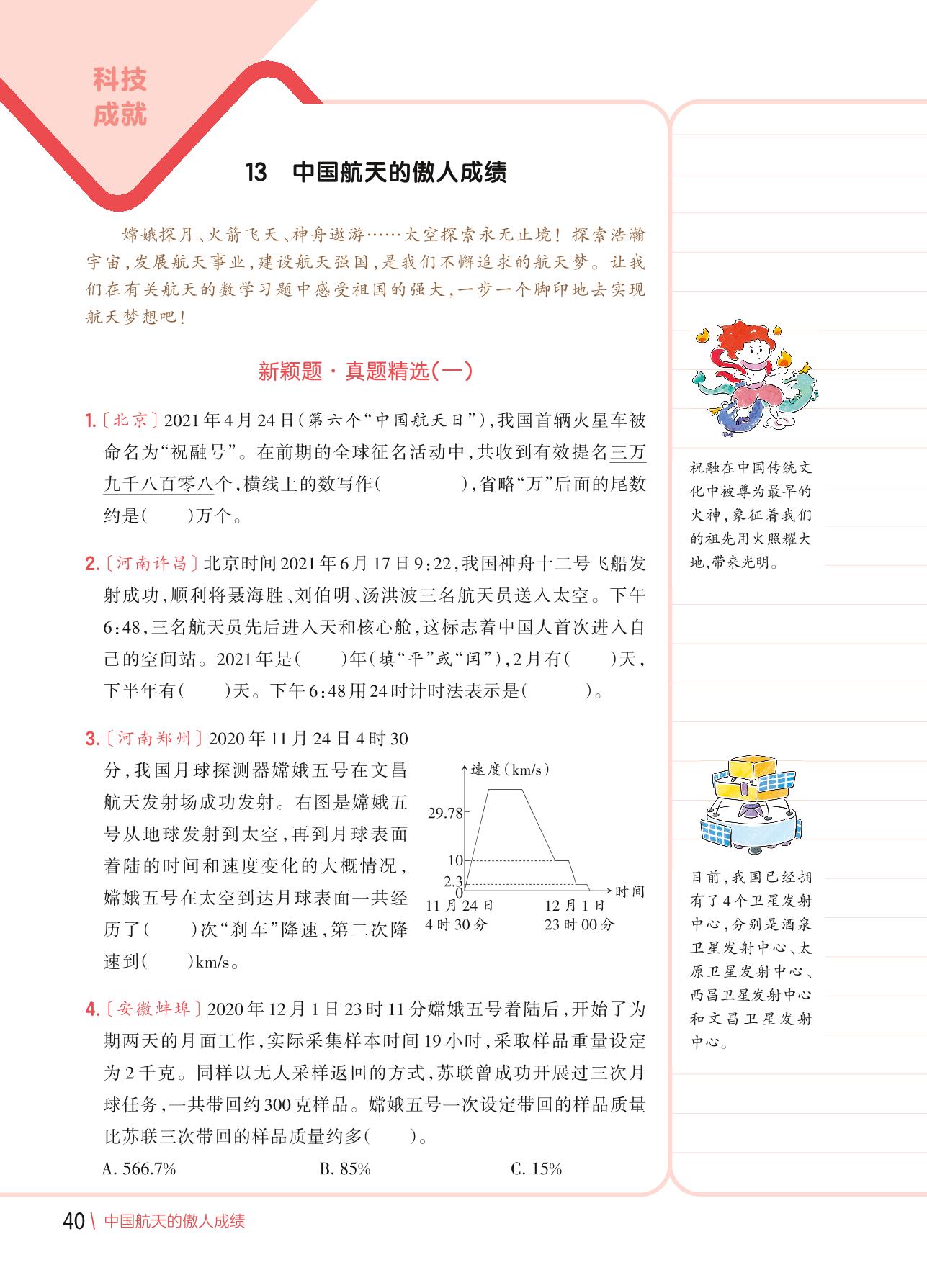 【2022版小学数学新颖题专练】热点话题五 科技成就 13 中国航天的傲人成绩