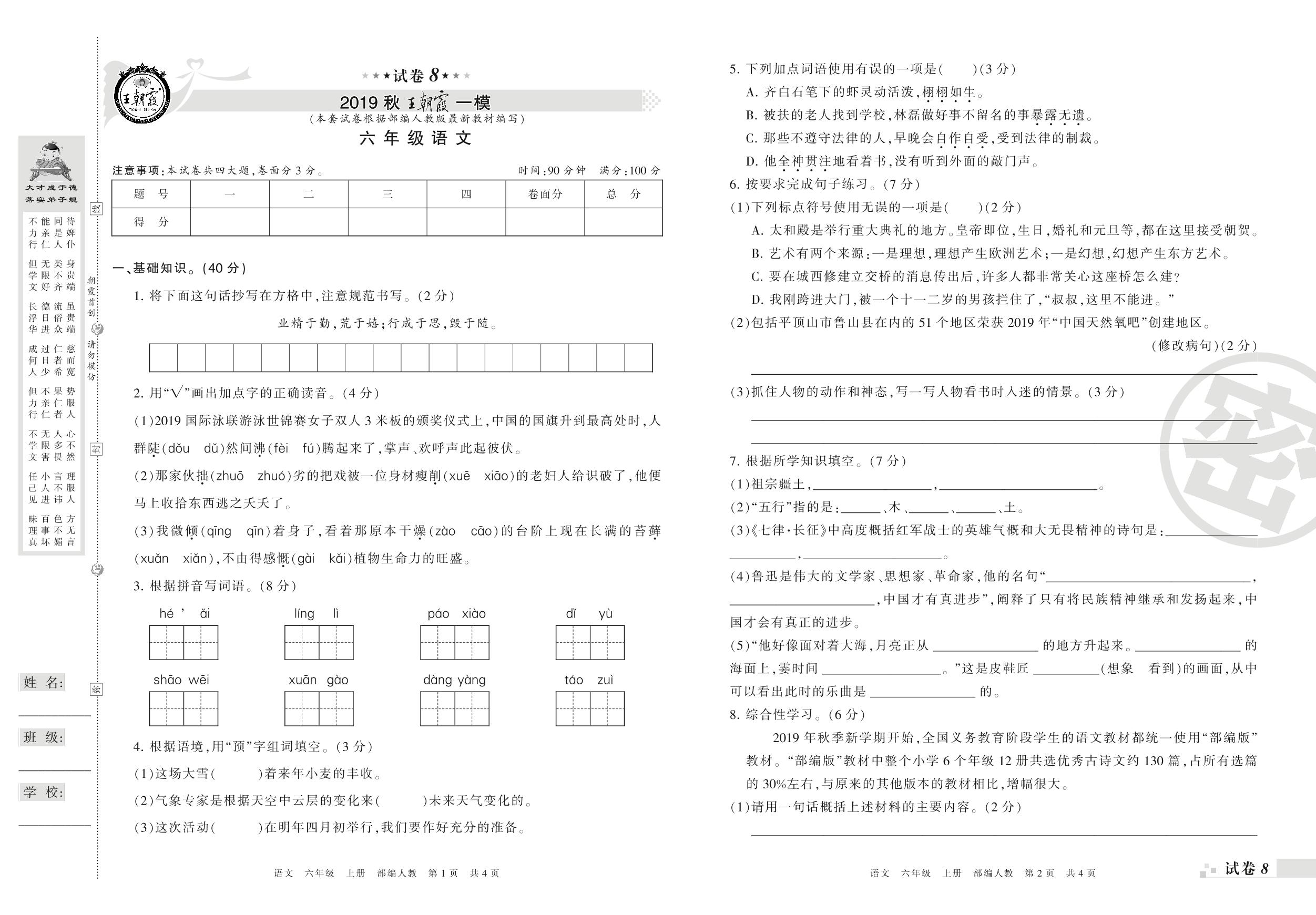 王朝霞期末模拟卷六年级上册语文(人教版)_R21080231820【8】
