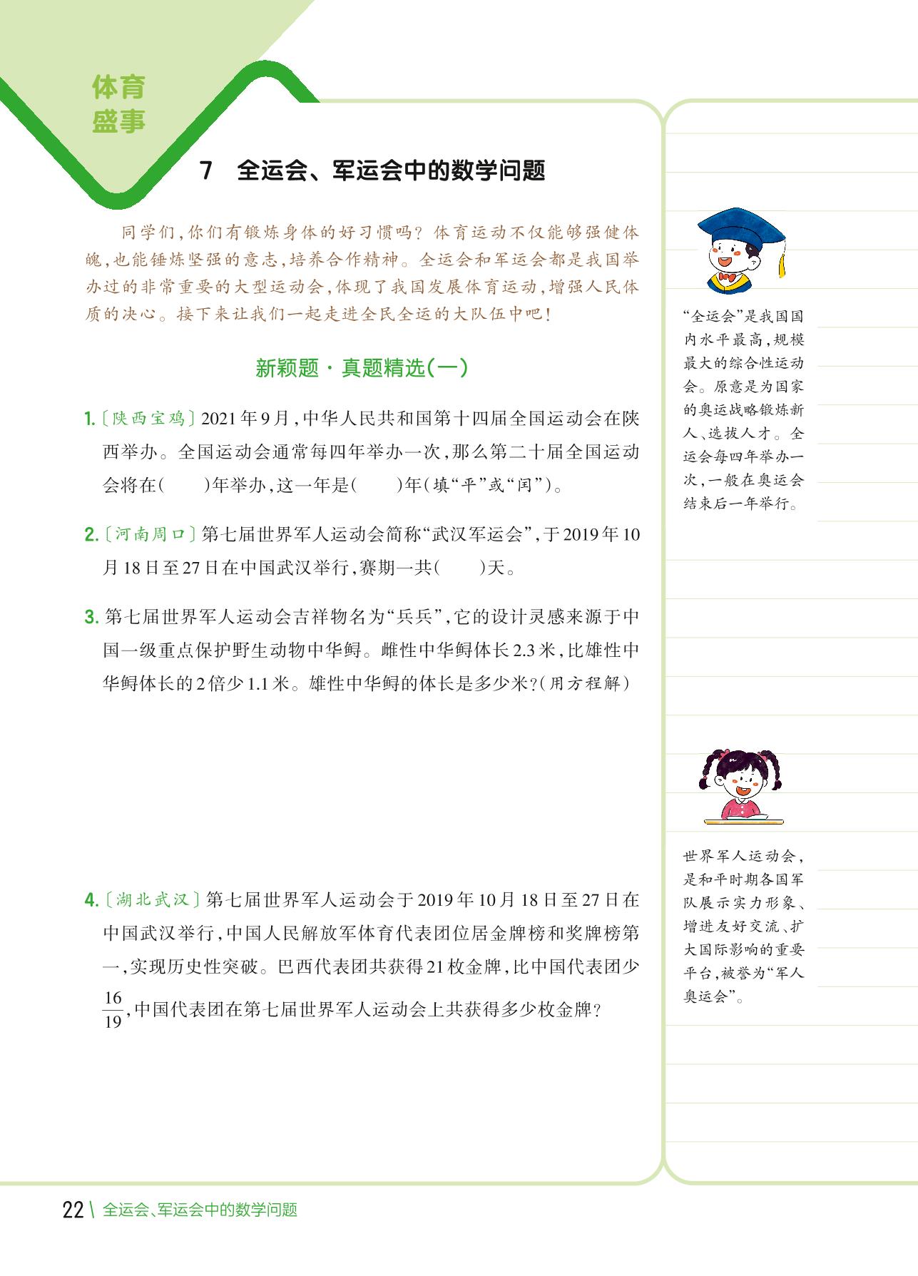 【2022版小学数学新颖题专练】热点话题三 体育盛事 7 全运会、军运会中的数学问题