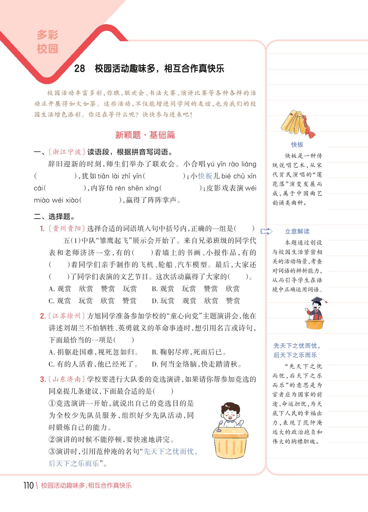 【2022版小学语文新颖题专练】热点话题十 多彩校园 28 校园活动趣味多,相互合作真快乐