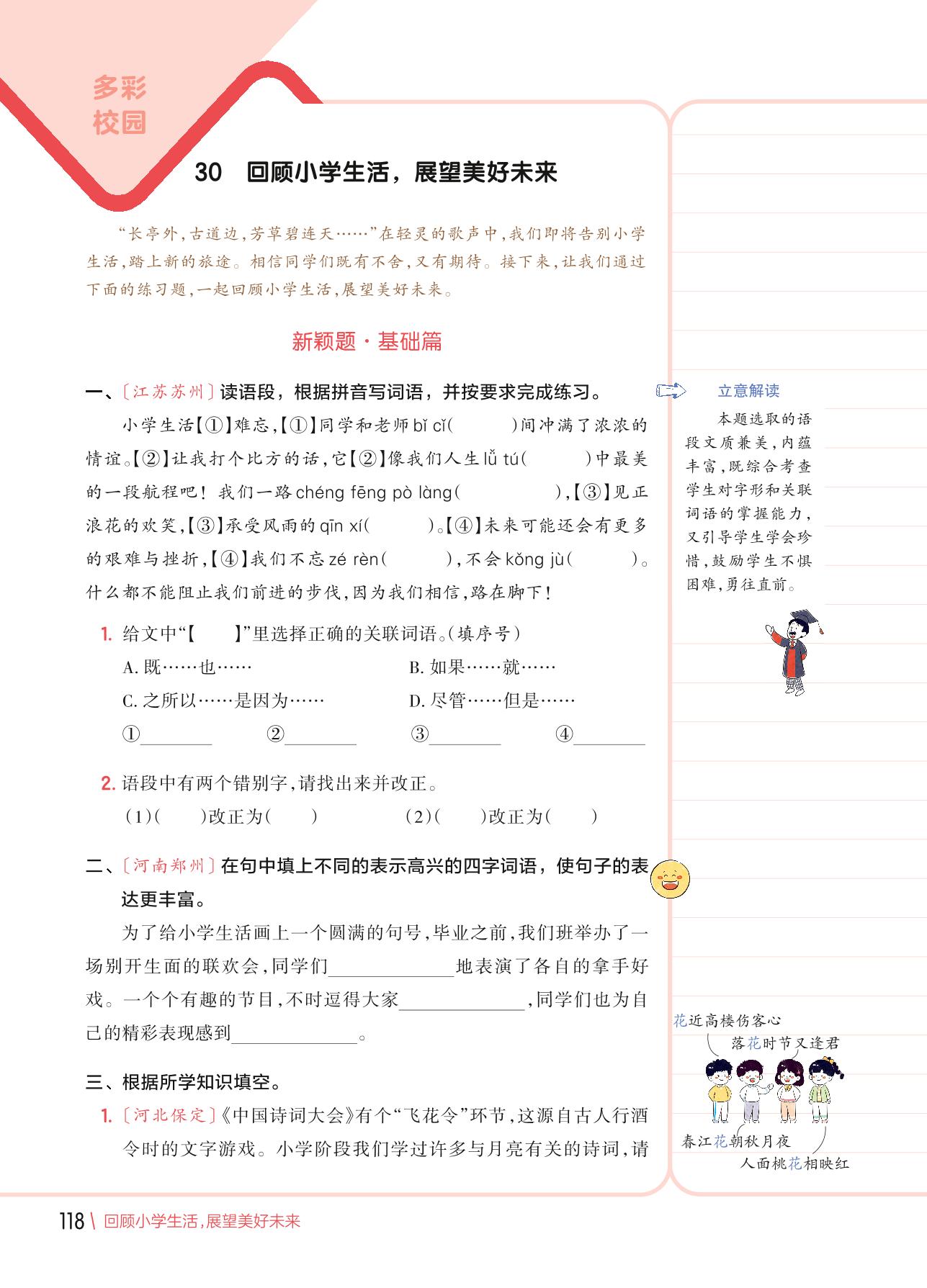 【2022版小学语文新颖题专练】热点话题十 多彩校园 30 回顾小学生活,展望美好未来