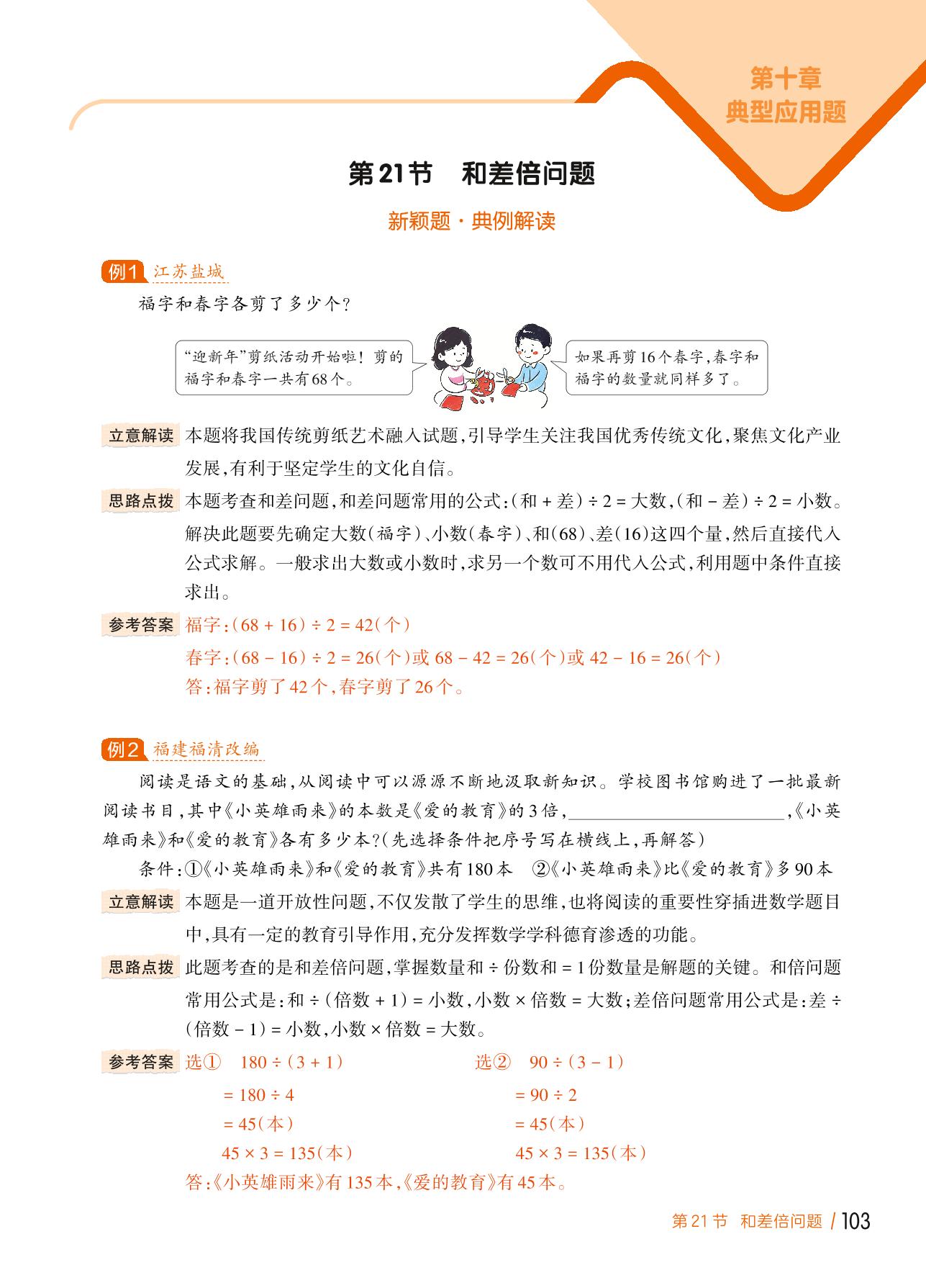 【2022版小学数学新颖题专练】专项知识点十 典型应用题 第21节 和差倍问题