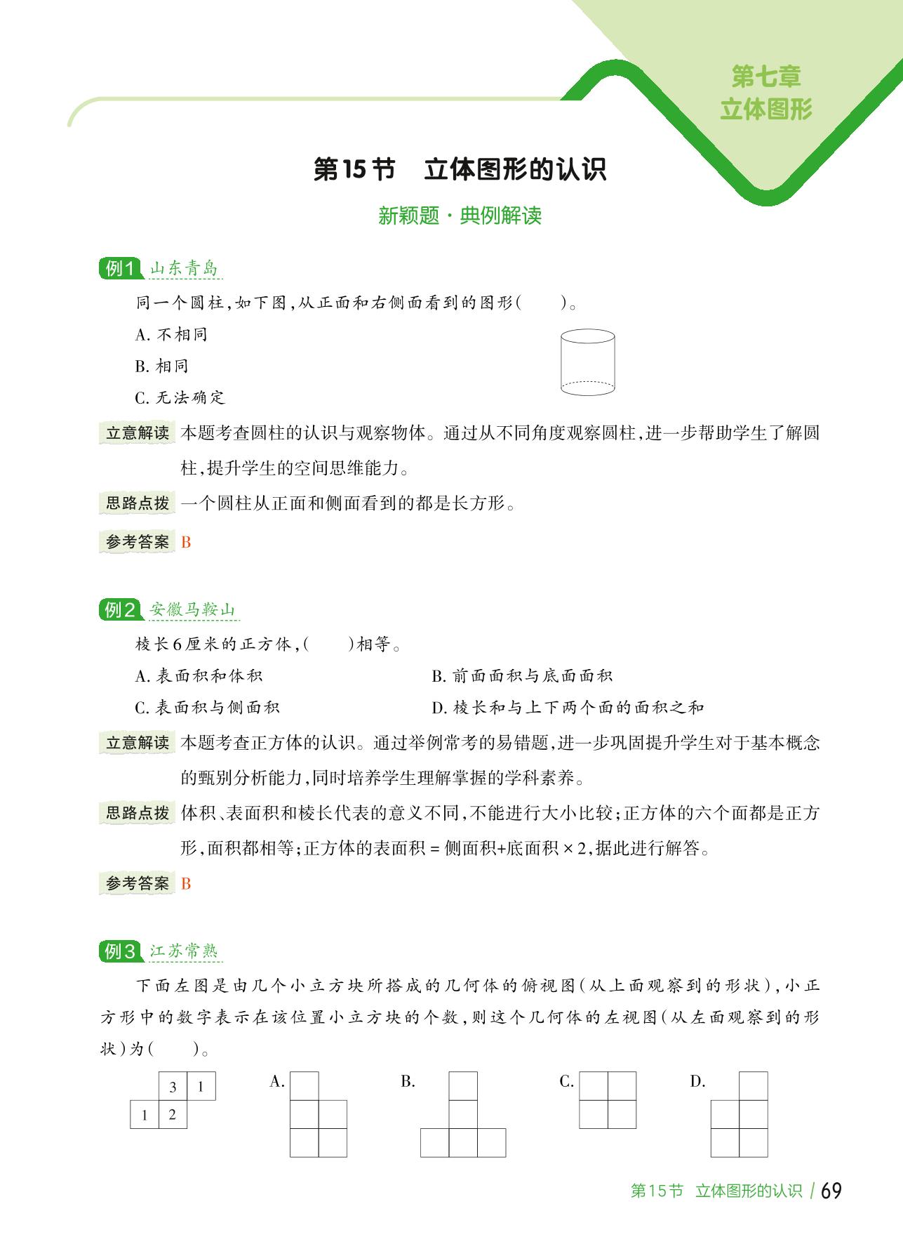 【2022版小学数学新颖题专练】专项知识点七 立体图形 第15节 立体图形的认识