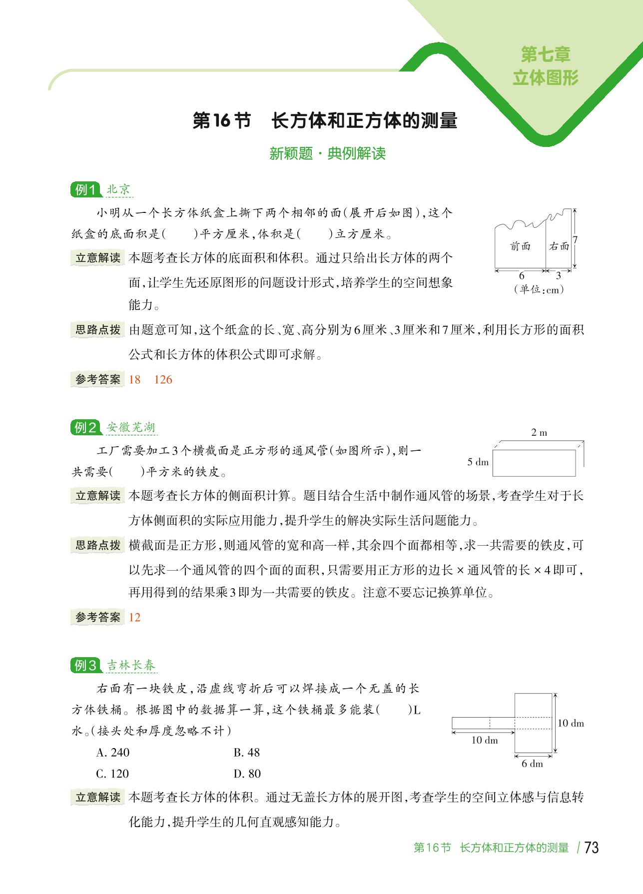 【2022版小学数学新颖题专练】专项知识点七 立体图形 第16节 长方体和正方体的测量