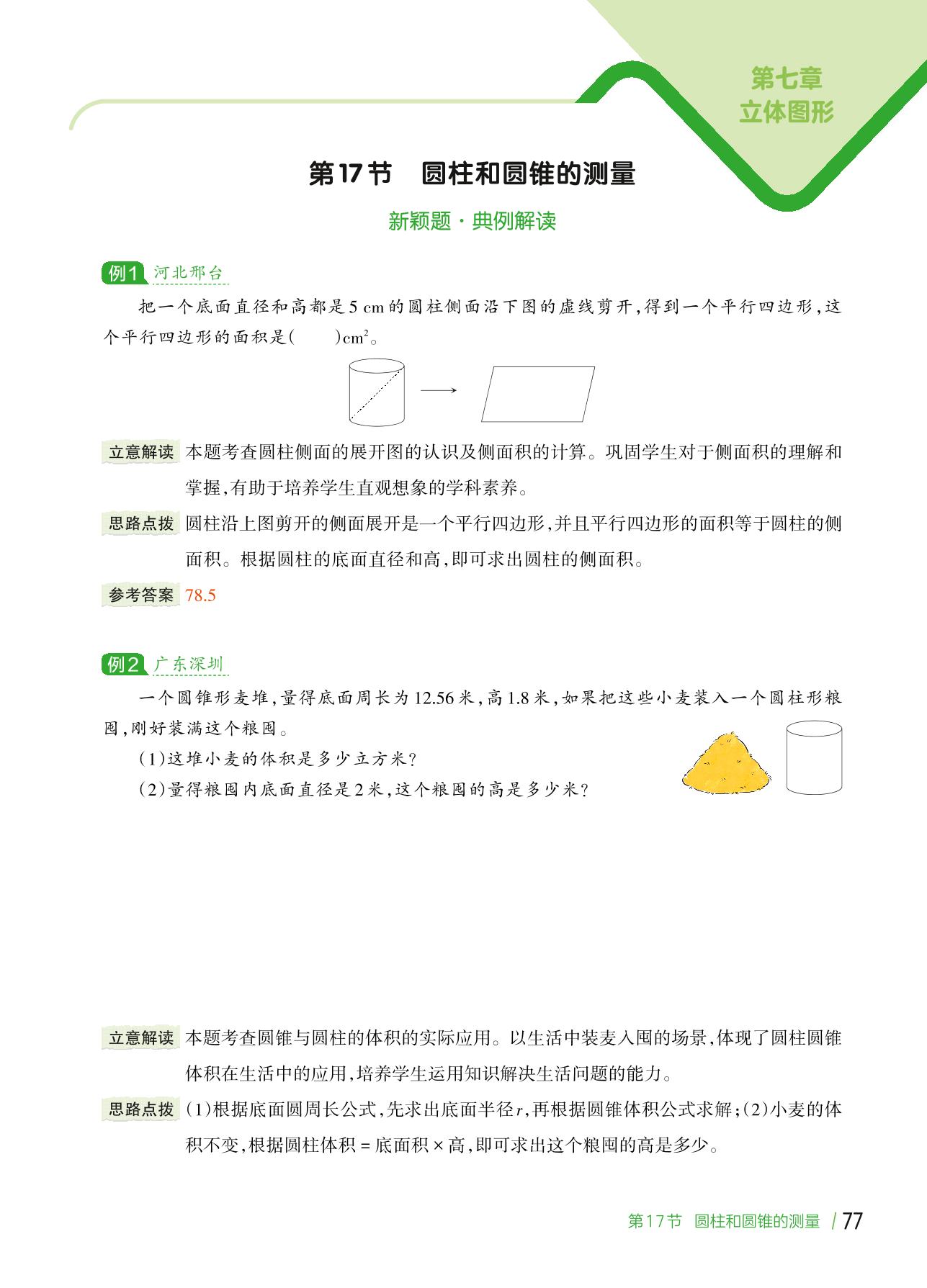 【2022版小学数学新颖题专练】专项知识点七 立体图形 第17节 圆柱和圆锥的测量