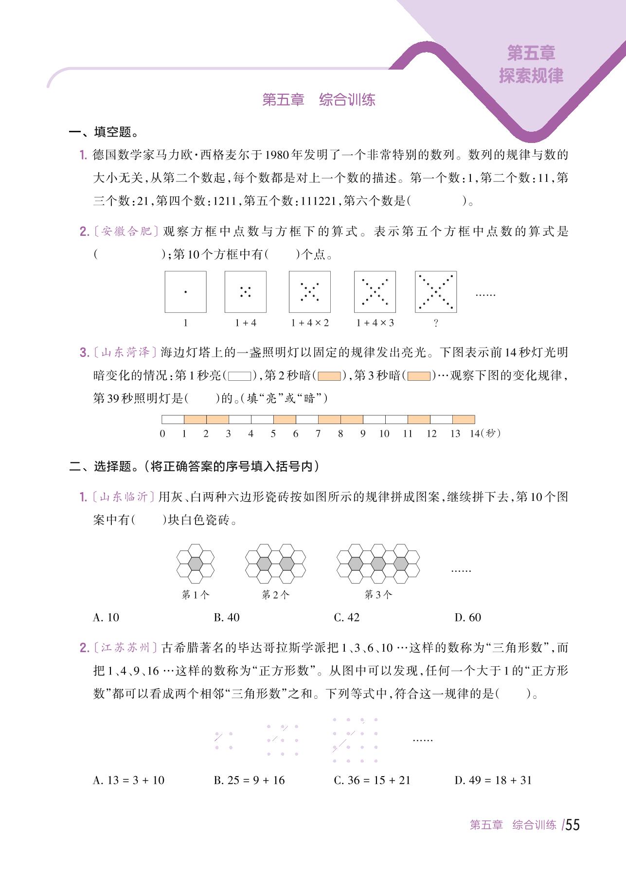 【2022版小学数学新颖题专练】专项知识点五 探索规律 综合训练