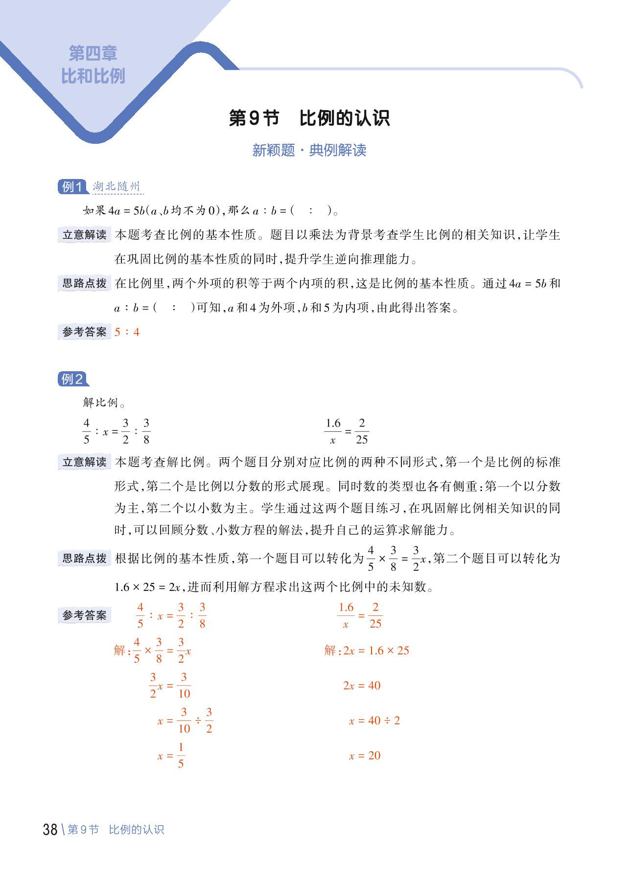 【2022版小学数学新颖题专练】专项知识点四 比和比例 第9节 比例的认识