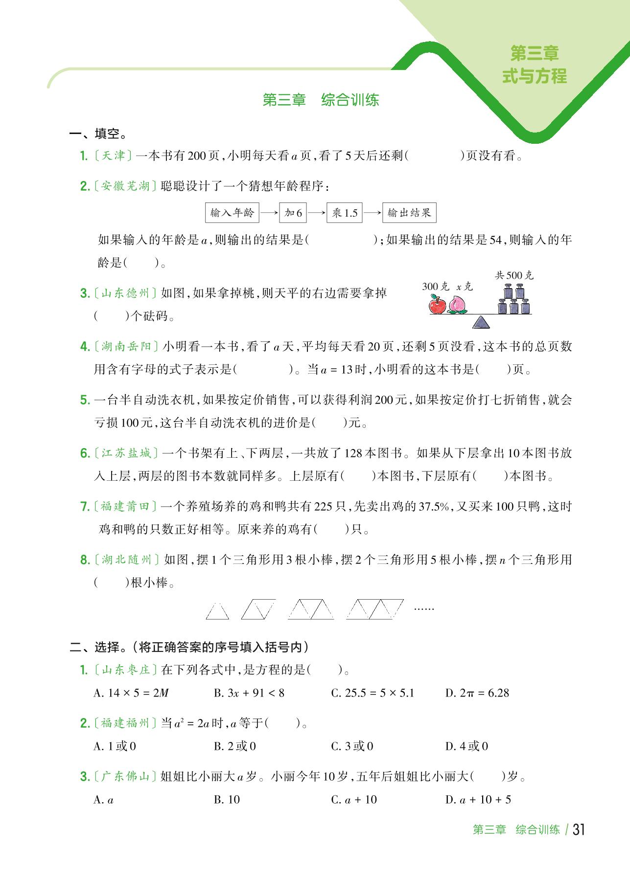 【2022版小学数学新颖题专练】专项知识点三 式与方程综合训练