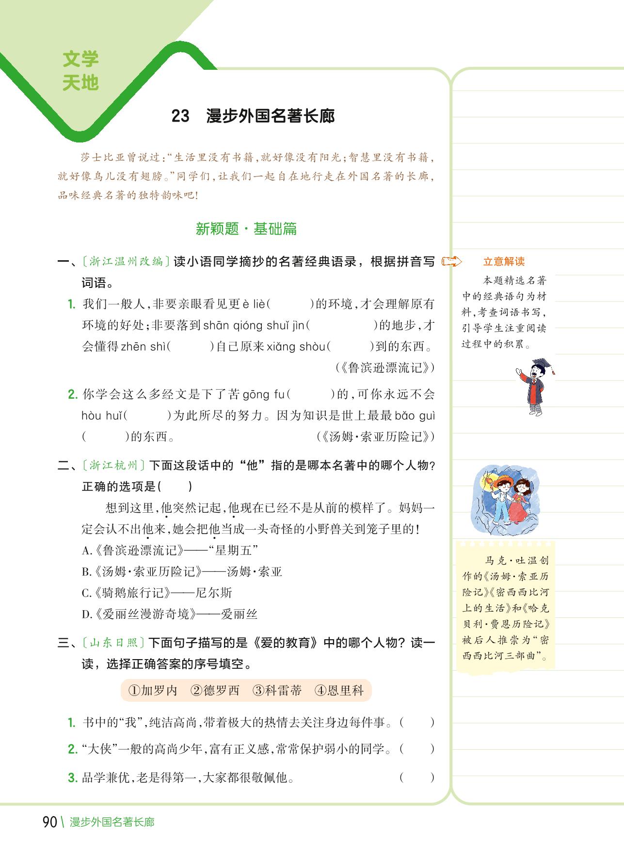 【2022版小学语文新颖题专练】热点话题八 文学天地 23 漫步外国名著长廊