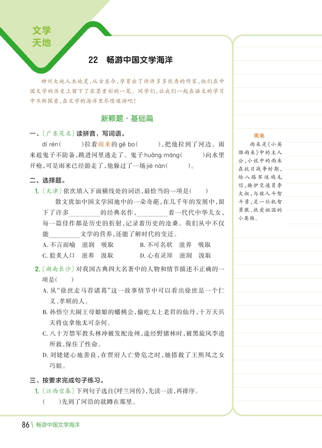 【2022版小学语文新颖题专练】热点话题八 文学天地 22 畅游中国文学海洋
