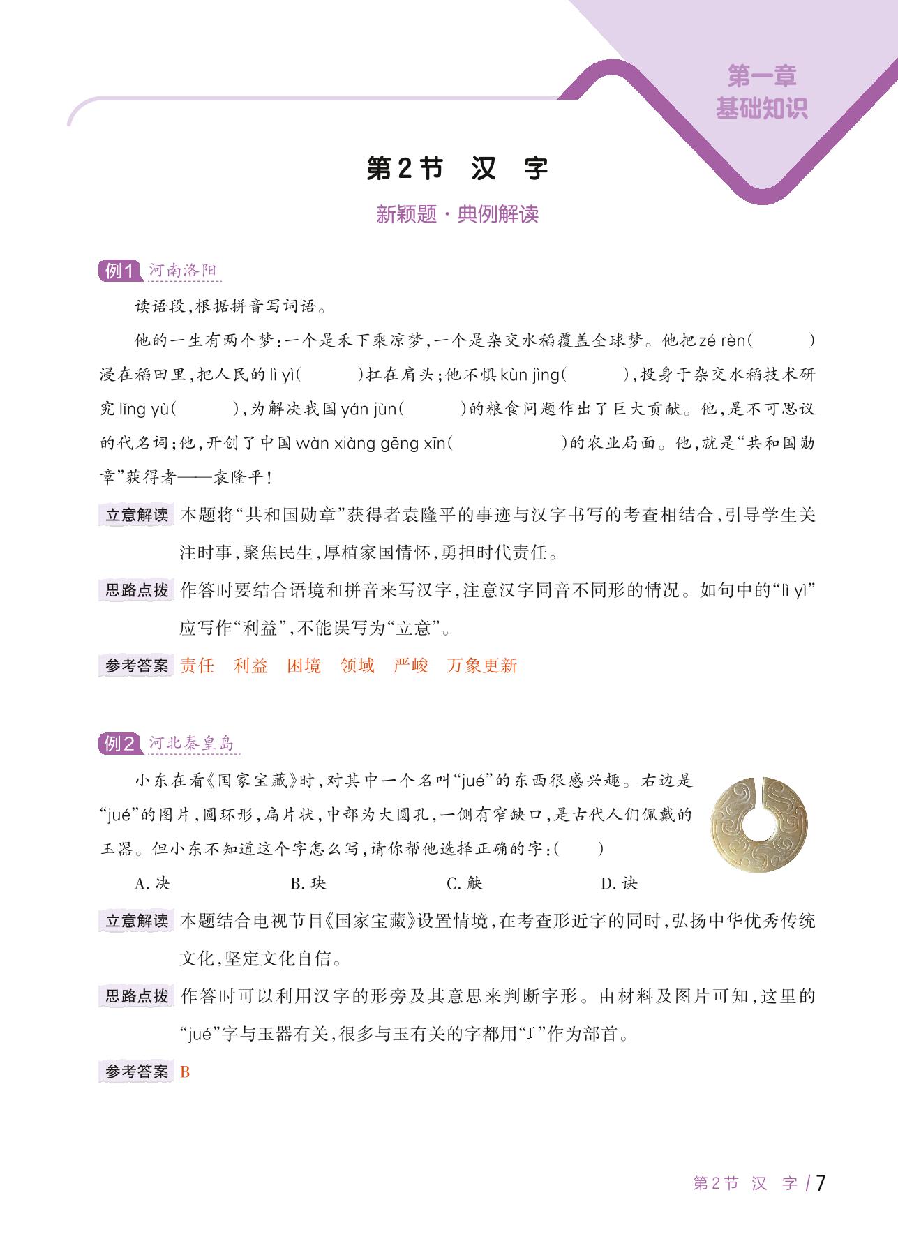 【2022版小学语文新颖题专练】专项知识点一 基础知识 第2节 汉字
