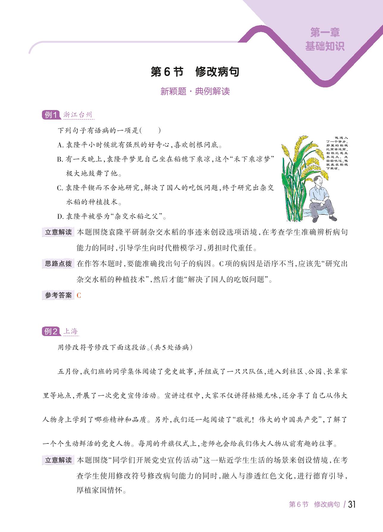 【2022版小学语文新颖题专练】专项知识点一 基础知识 第6节 修改病句