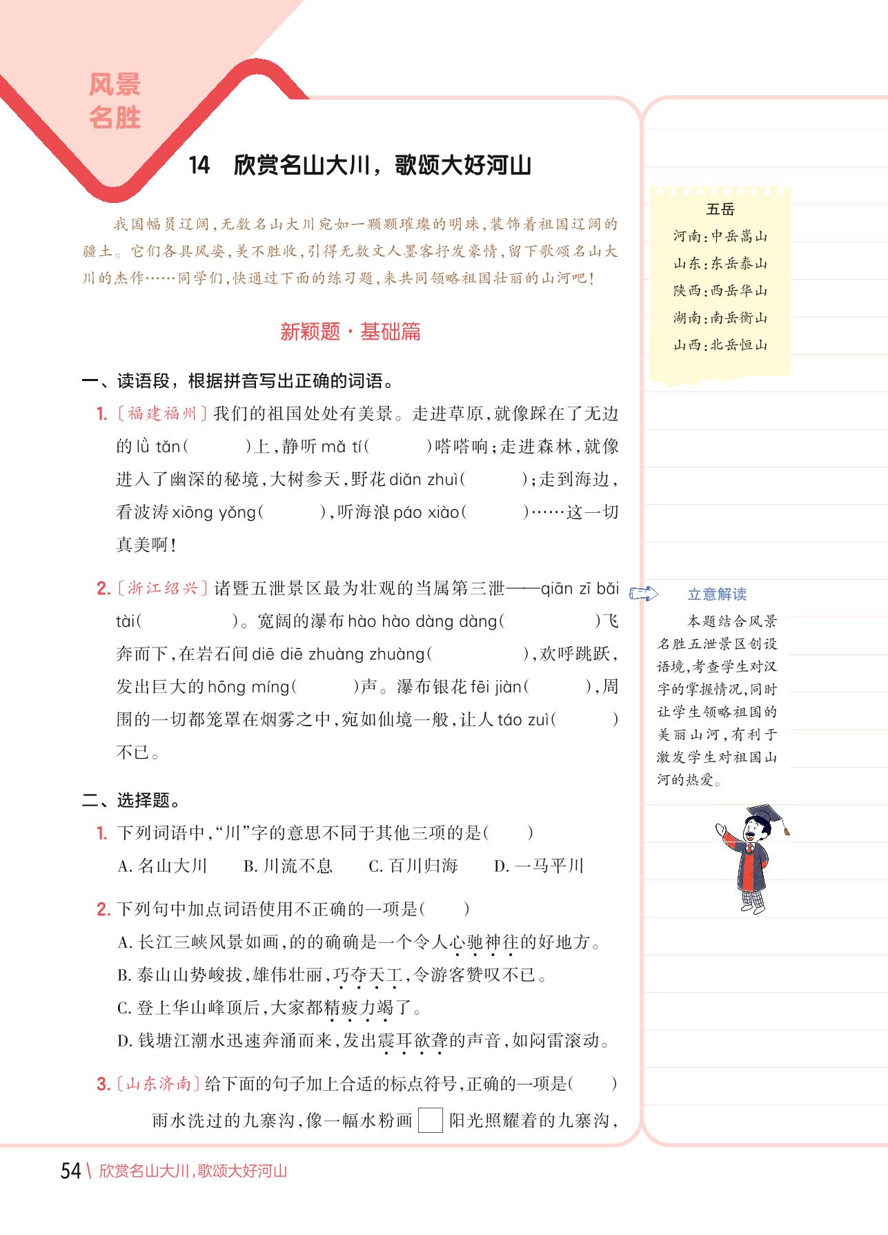 【2022版小学语文新颖题专练】热点话题五 风景名胜 14 欣赏名山大川,歌颂大好河山