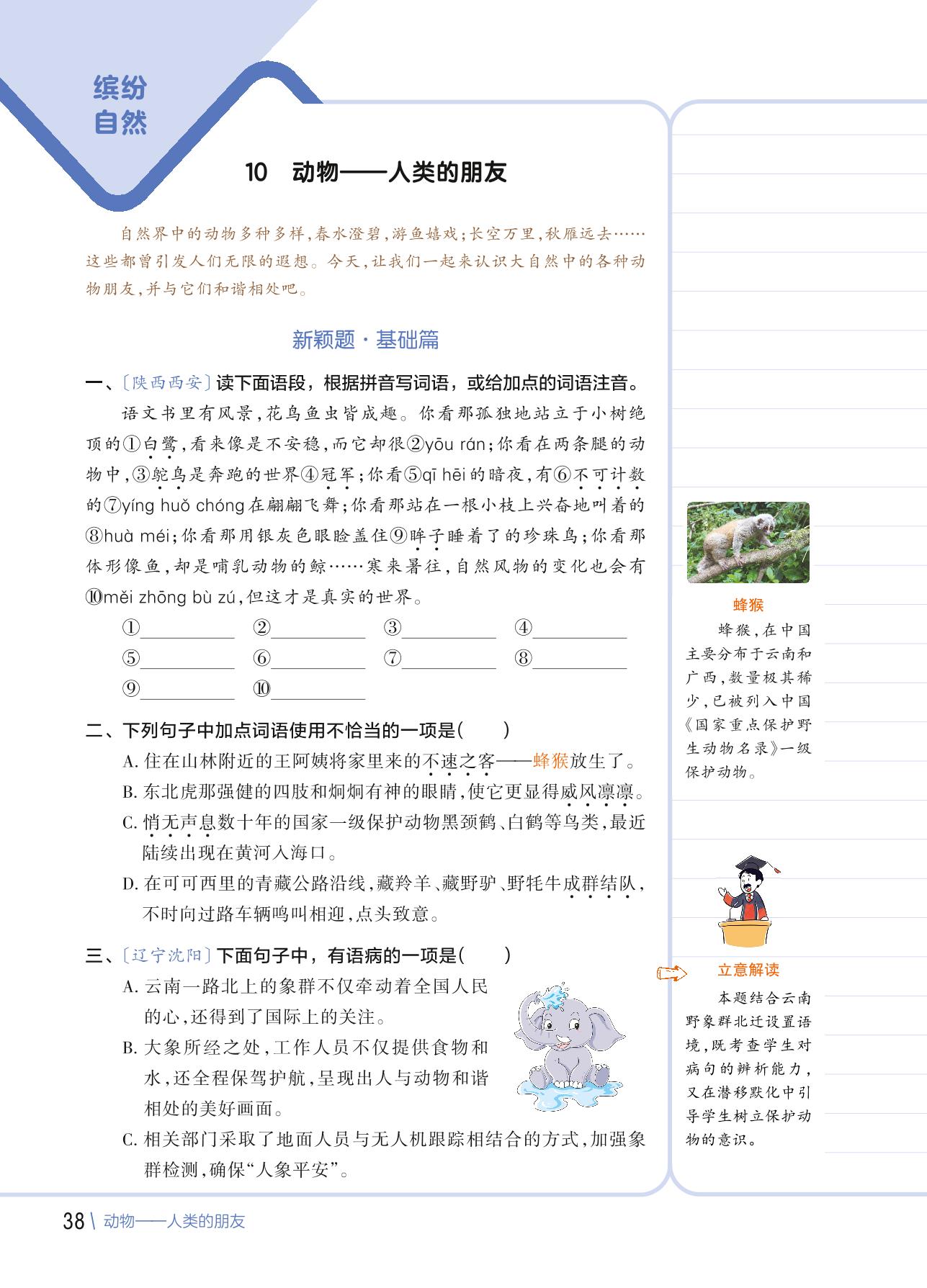 【2022版小学语文新颖题专练】热点话题四 缤纷自然 10 动物——人类的朋友