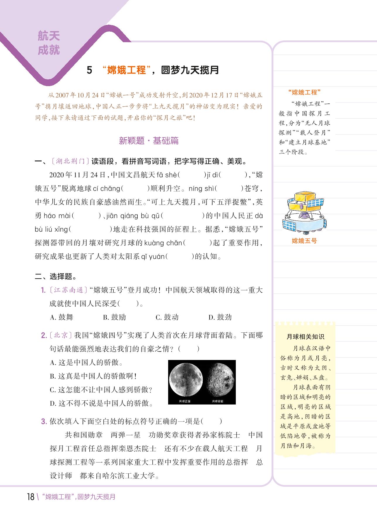 【2022版小学语文新颖题专练】热点话题二 航天成就 5 “嫦娥工程”,圆梦九天揽月