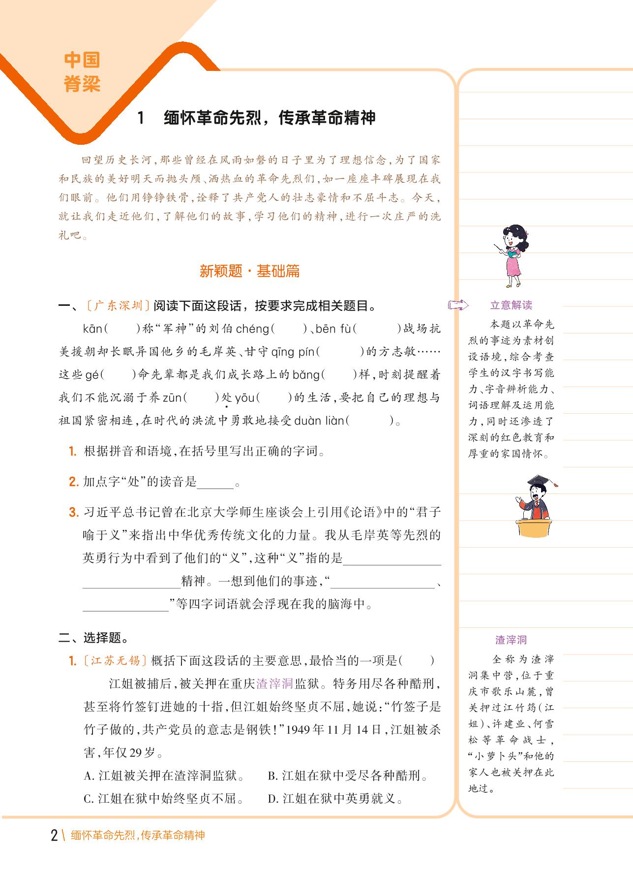 【2022版小学语文新颖题专练】热点话题一 中国脊梁 1 缅怀革命先烈,传承革命精神