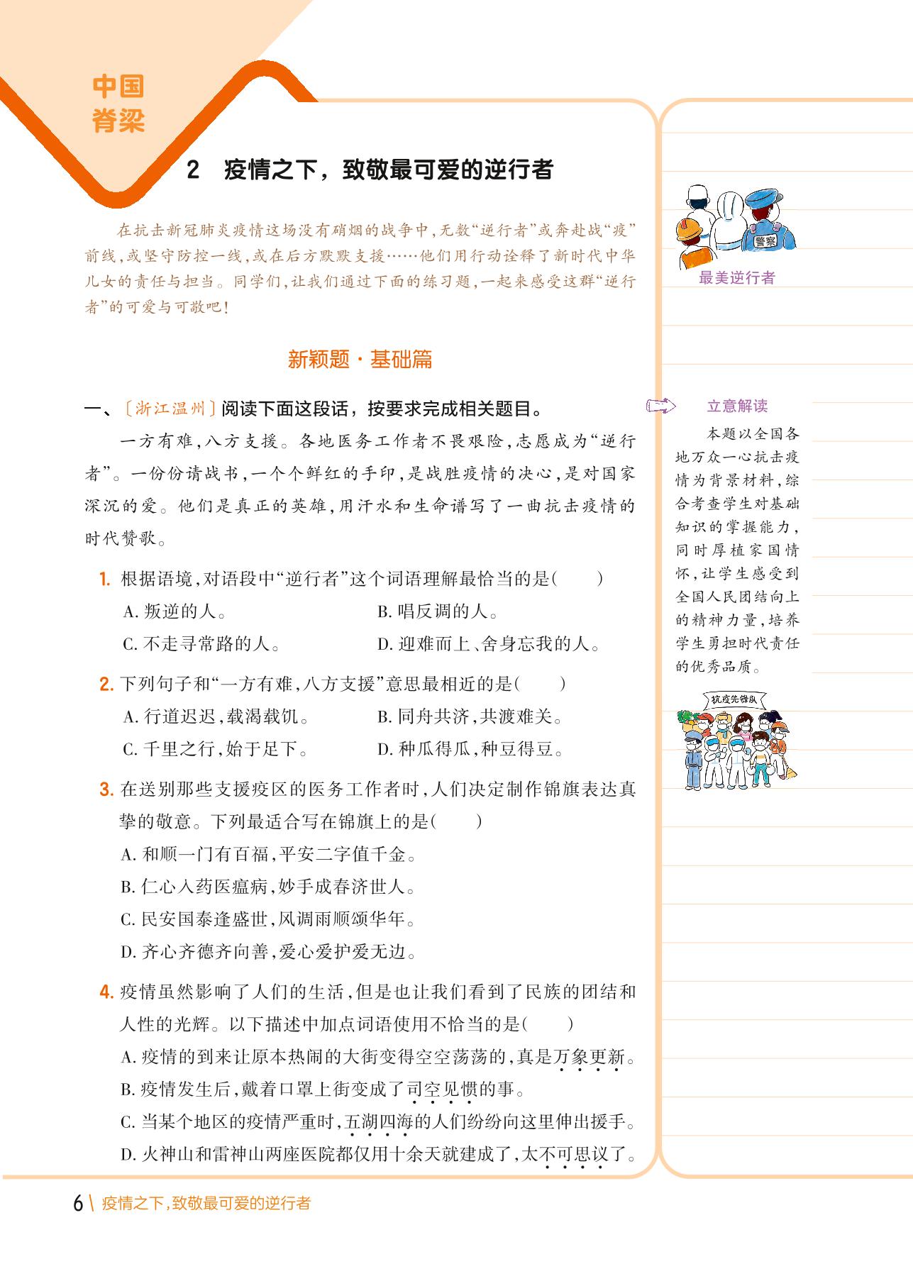 【2022版小学语文新颖题专练】热点话题一 中国脊梁 2 疫情之下,致敬最可爱的逆行者