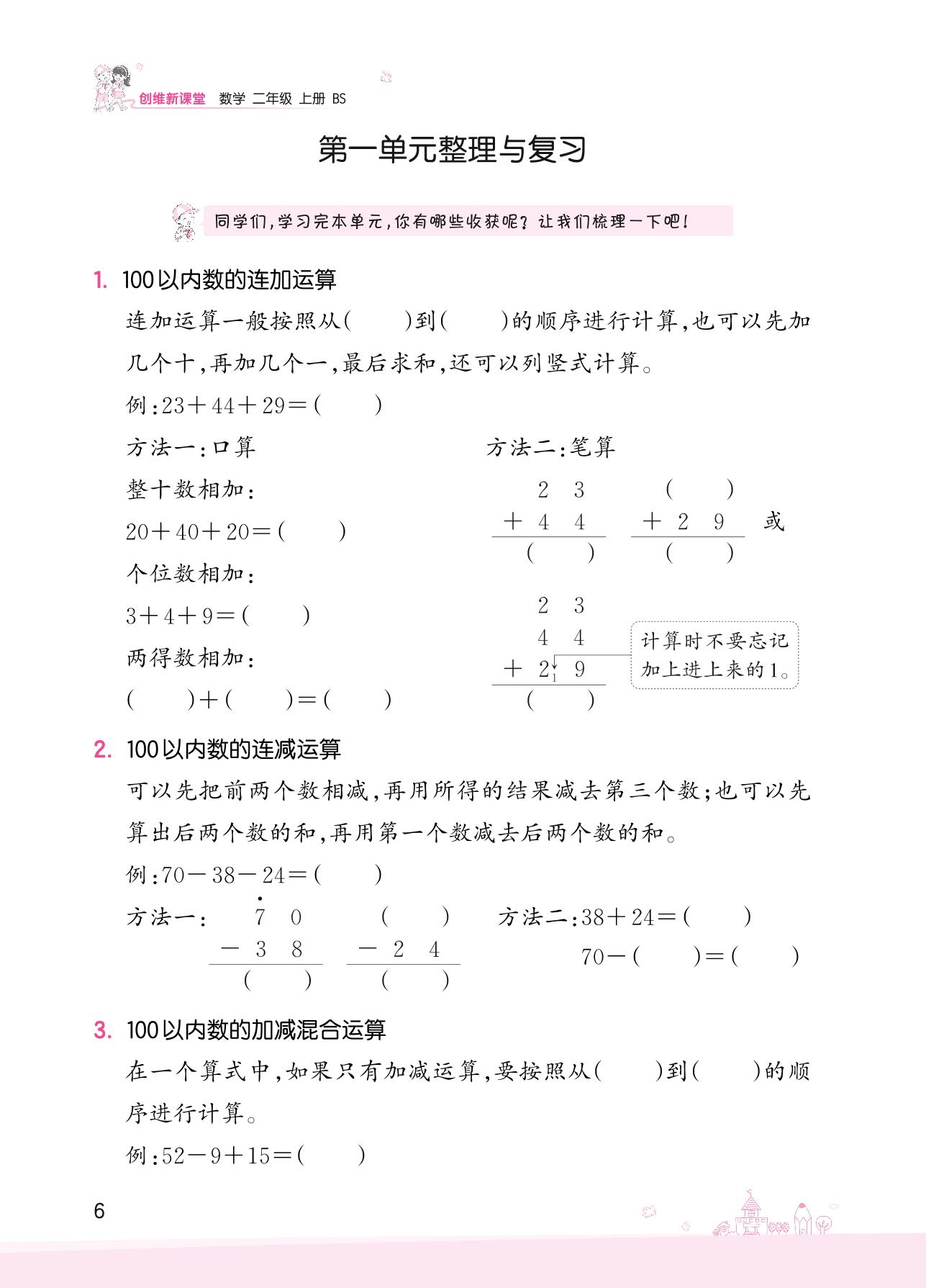 2022上册二年级数学北师版 一 加与减——第一单元整理与复习