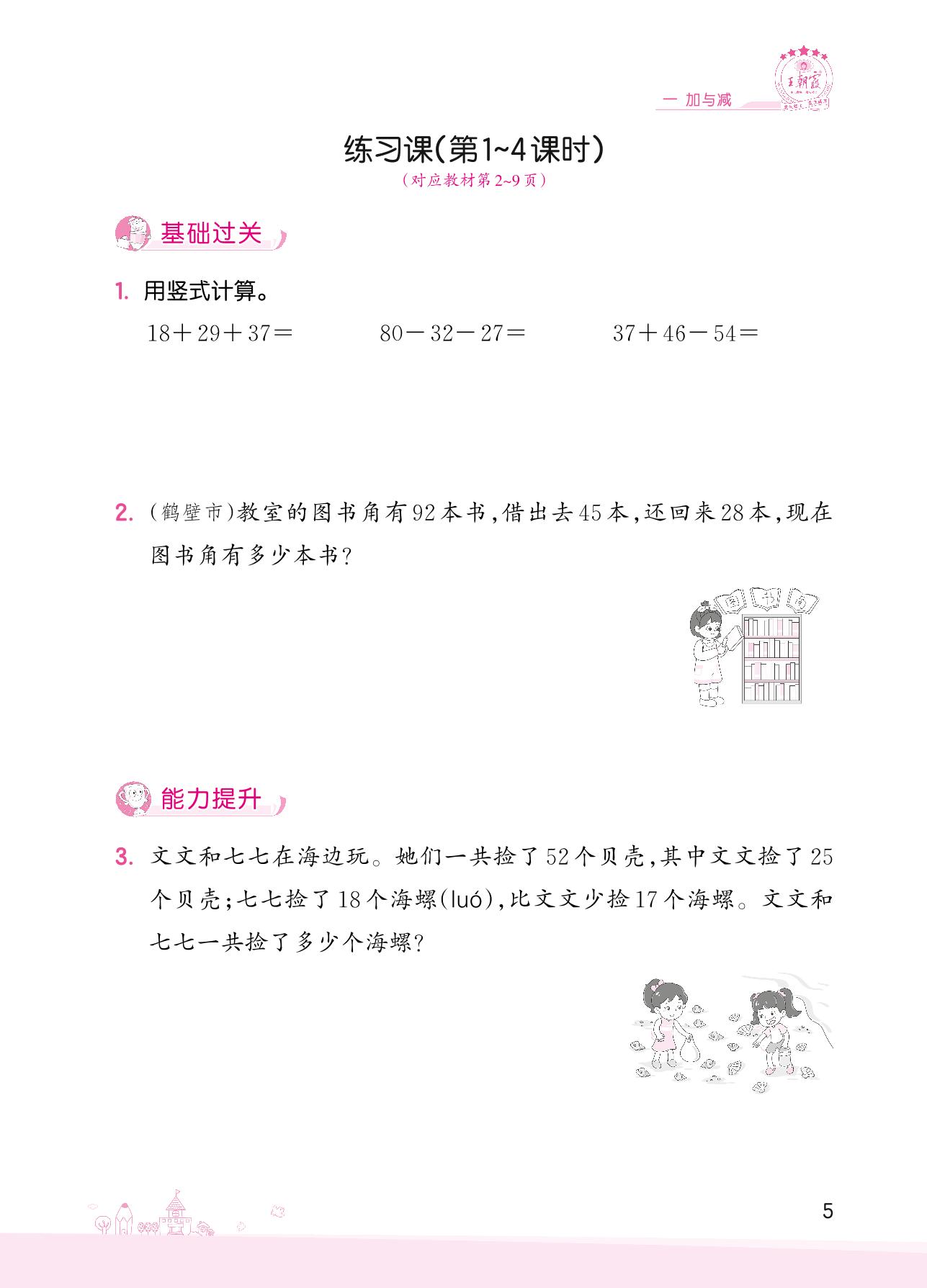 2022上册二年级数学北师版 一 加与减——练习课(第1~4课时)