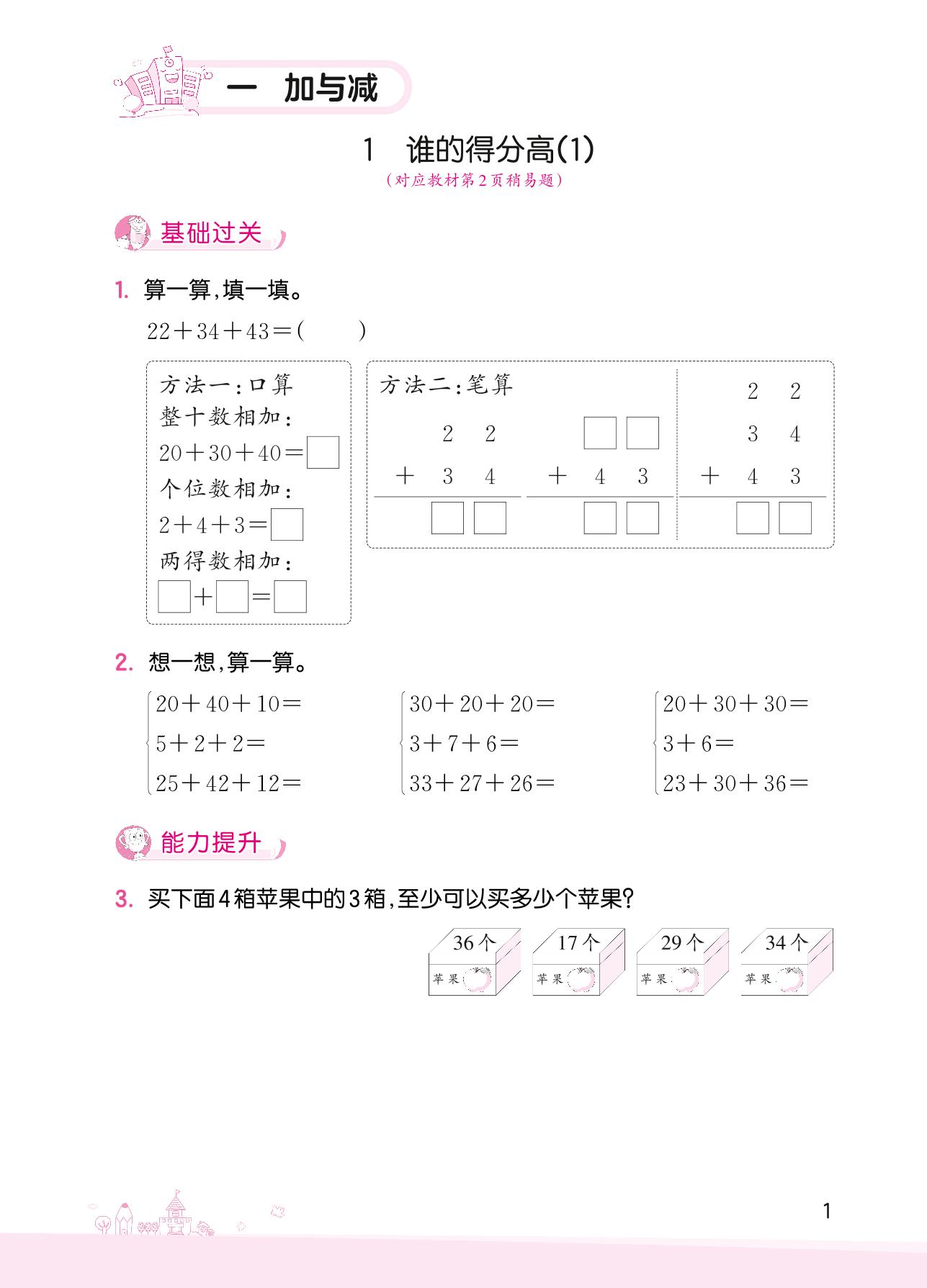 2022上册二年级数学北师版 一 加与减——1 谁的得分高(1)